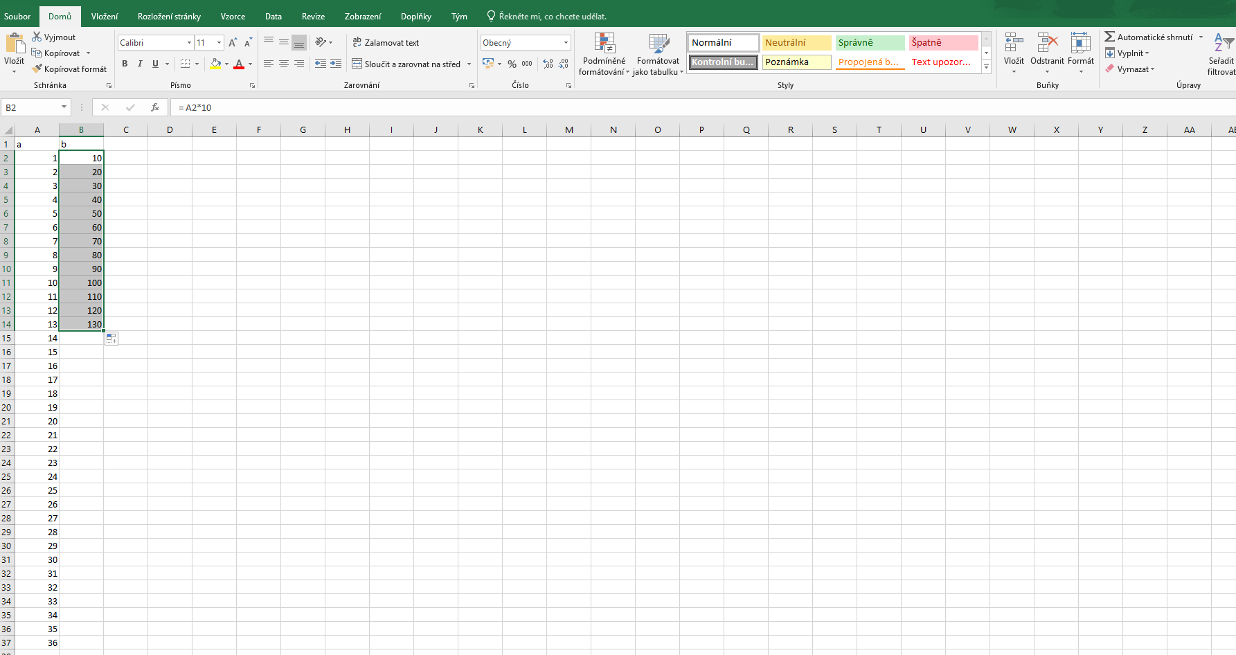 Bot copy values or functions from first cell (row) in Excel sheet and fills cells below in selected range.