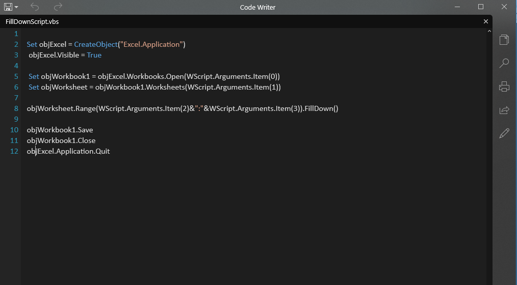 Bot fills down columns in selected range in Excel sheet with values or functions copied from first row in selection.