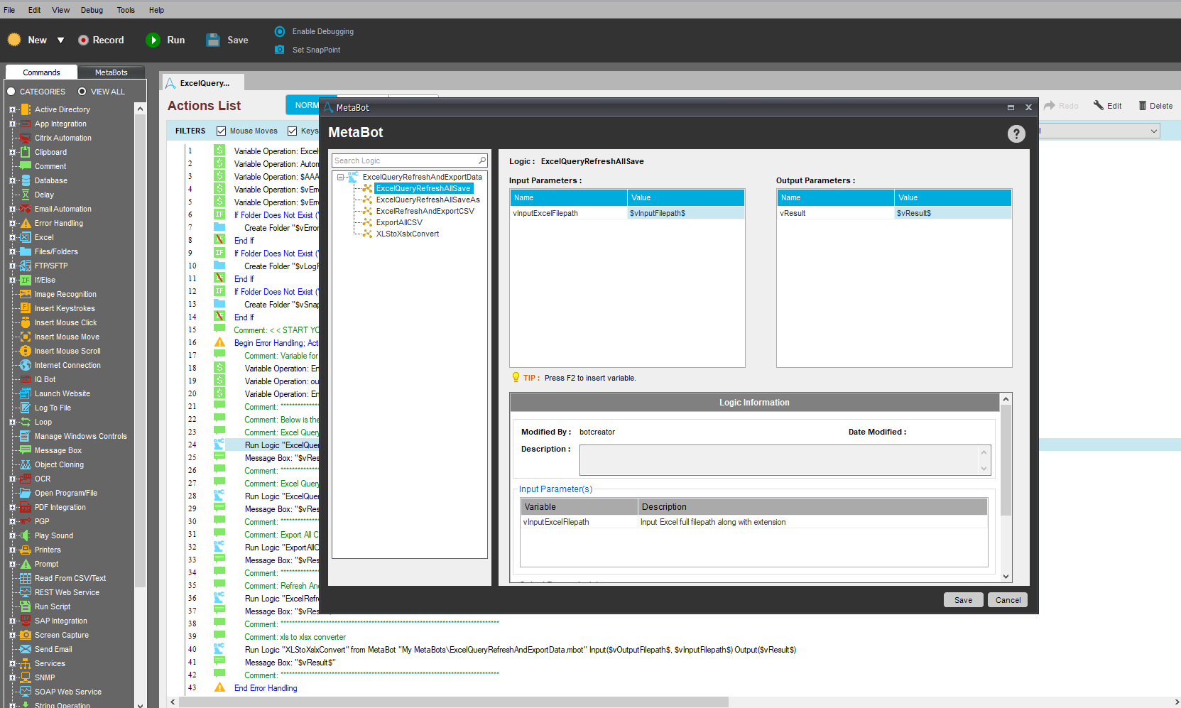 This Bot performs operations such as Refresh Excel query and Export data in Excel.