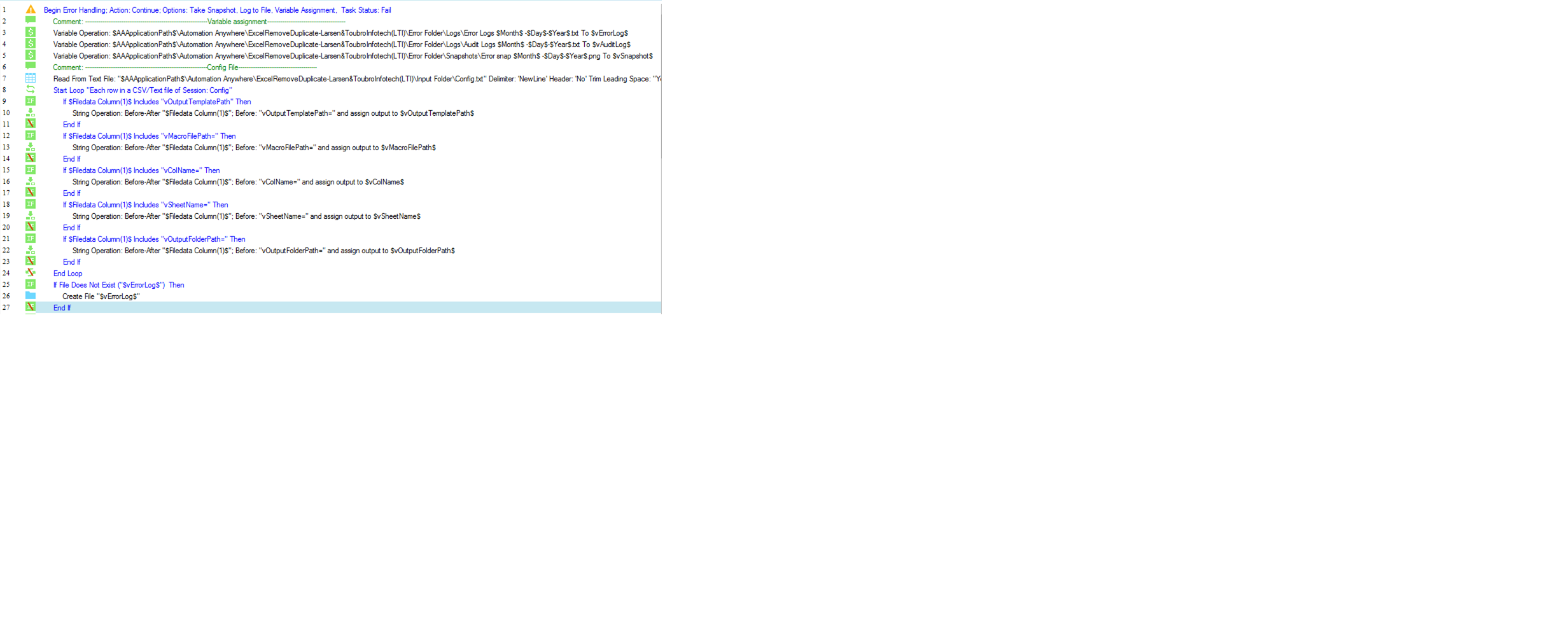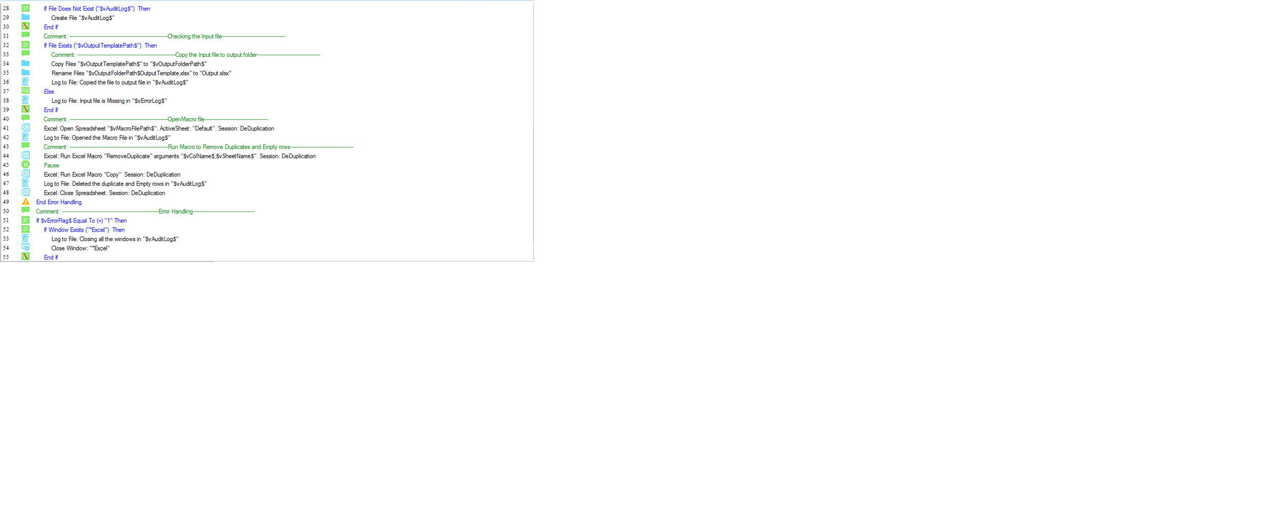 This Bot removes duplicate record values and null values in selected column and returns processed records in a new excel file in the specified path