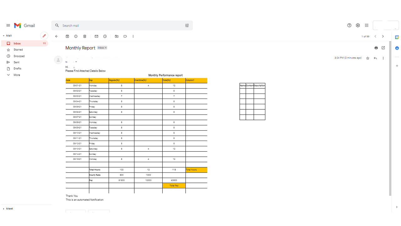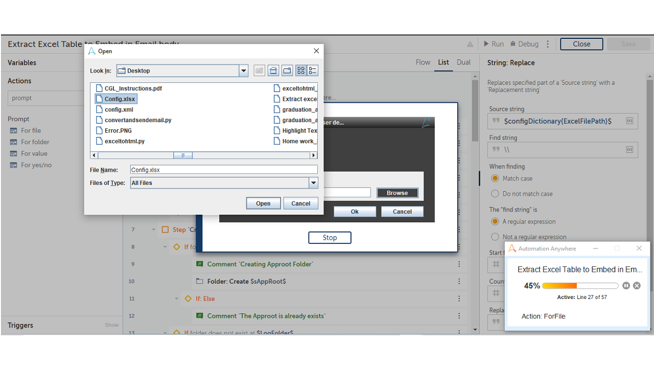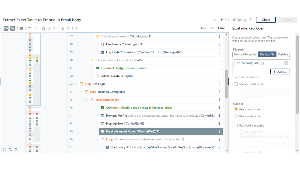 The bot is used for reading the data from a specified Excel sheet and fetching all the content to embed in an email body. It attaches the table inside the email body with all other templates specified in the config file. The bot is capable to extract multiple tables in an Excel file.