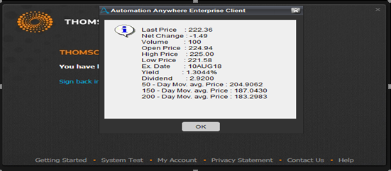 Thomson Reuters is product used by financial professionals to monitor and analyze financial information. This Bot uses Thomson Reuters to extract technical parameter.