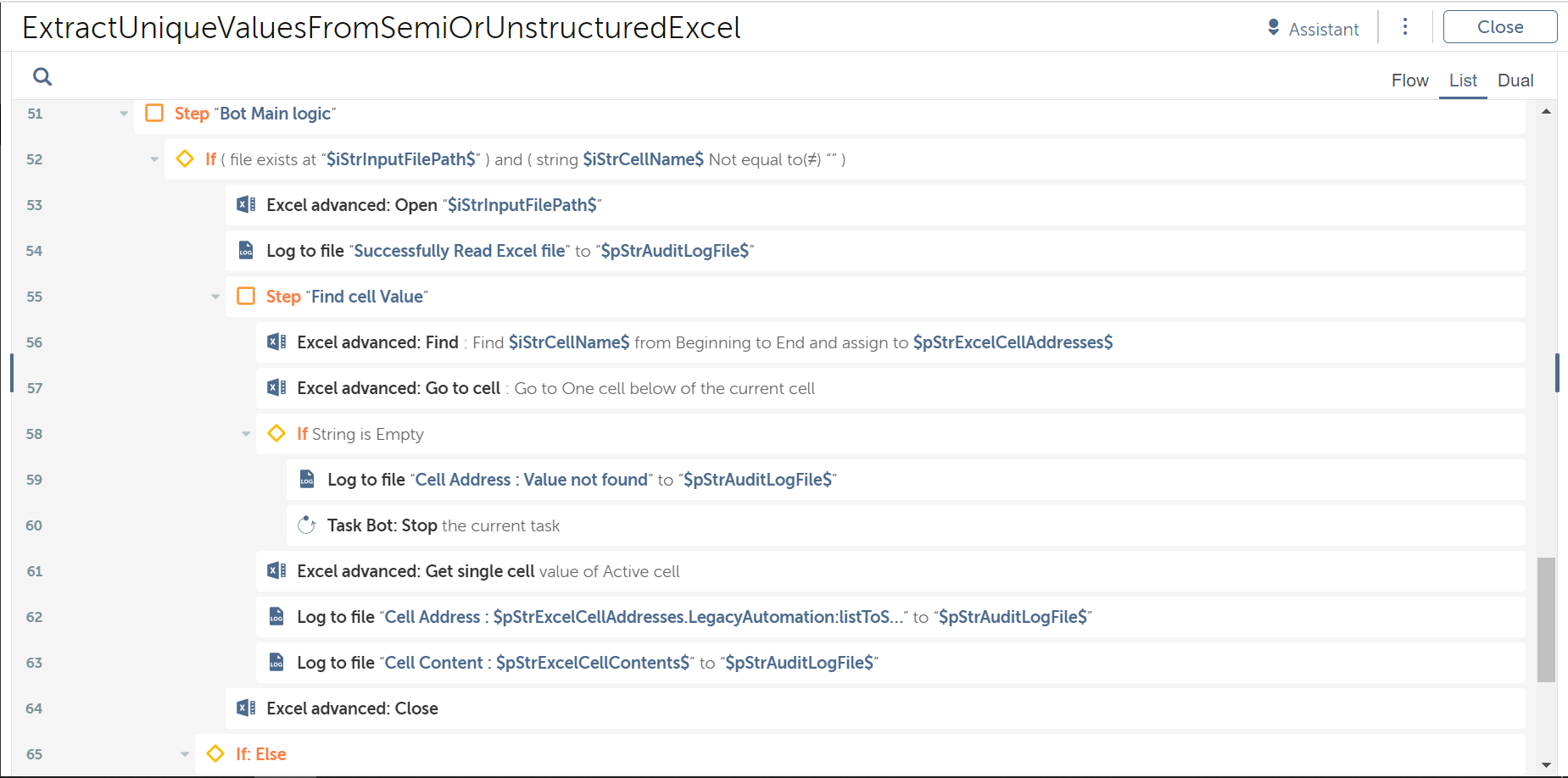 This bot can be used to extract the value of unique keywords from unstructured Excel files