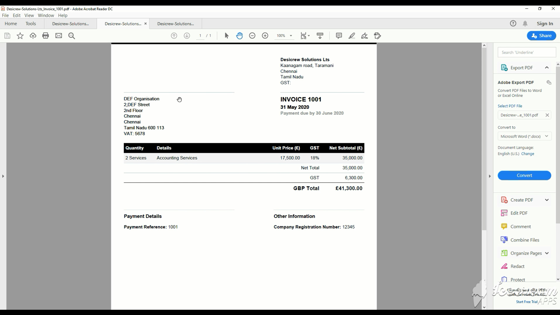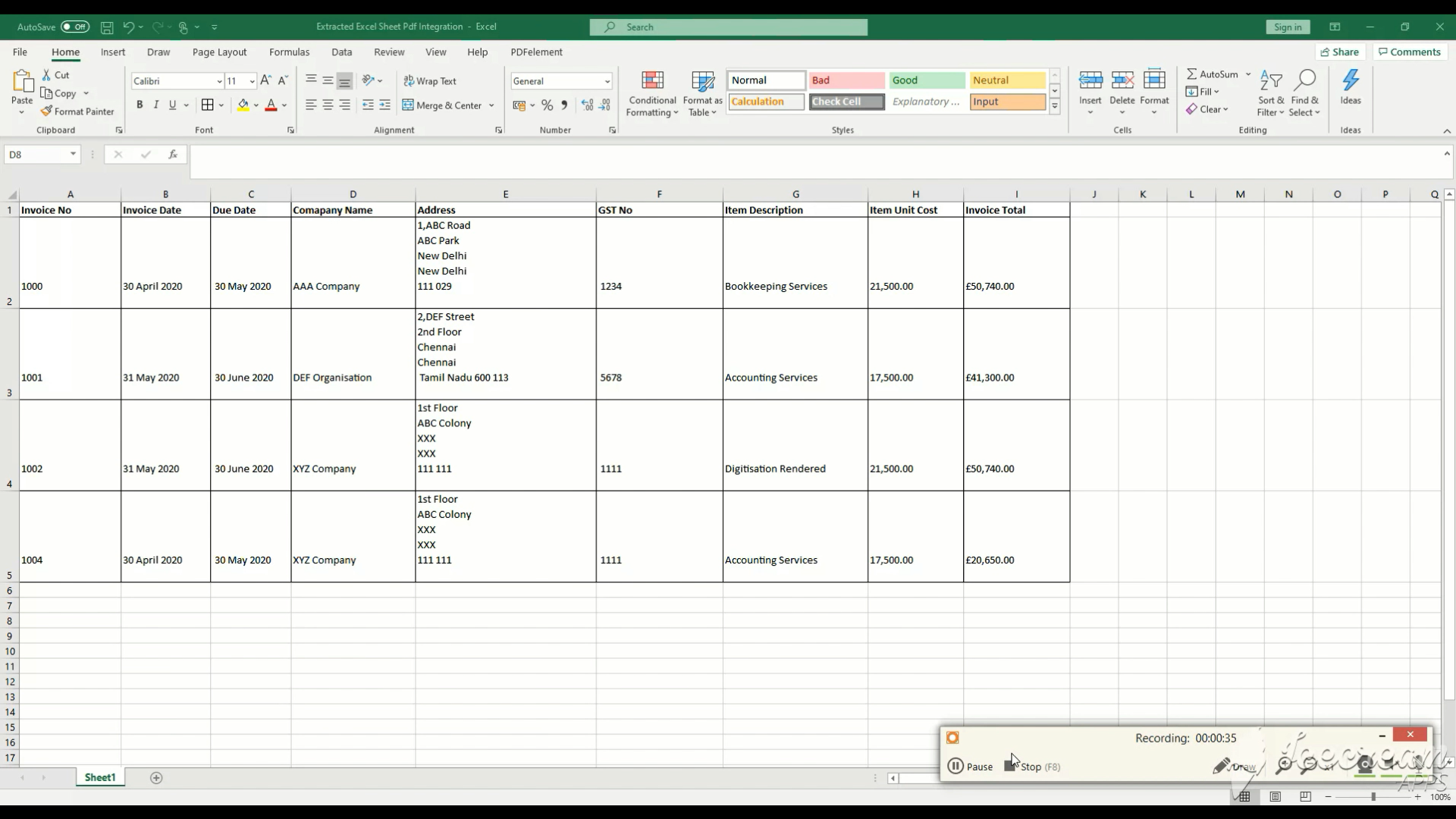 This bot takes the folder containing all the Invoices in Native PDF Format and extracts the necessary data and puts them in an Excel sheet.
