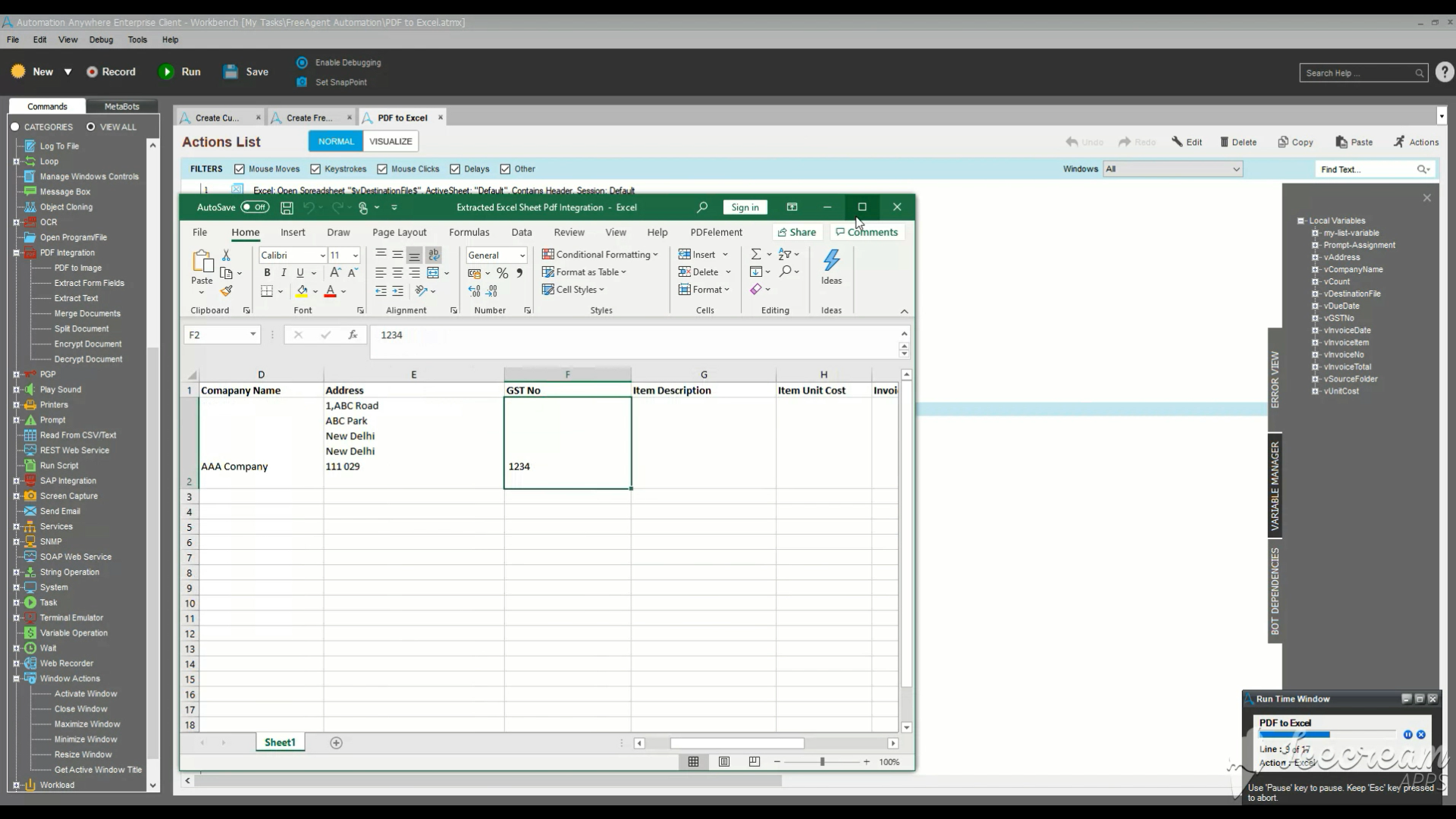 This Bot takes the folder containing all the Invoices in Native PDF Format and extracts the necessary data from each invoice individually and puts them in an Excel sheet. The Excel Sheet is finally saved.