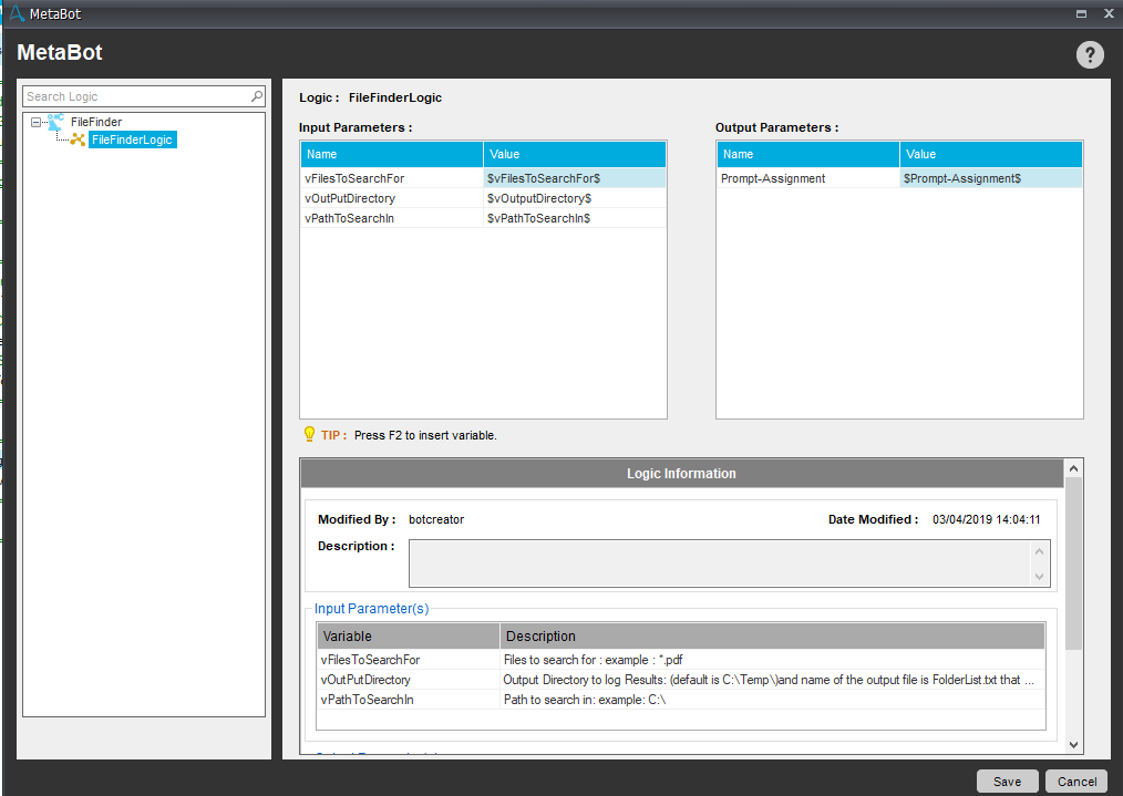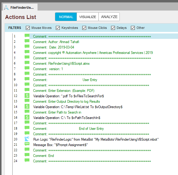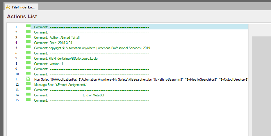 - Inputs: vFilesToSearchFor vPathToSearchIn vOutPutDirectory
