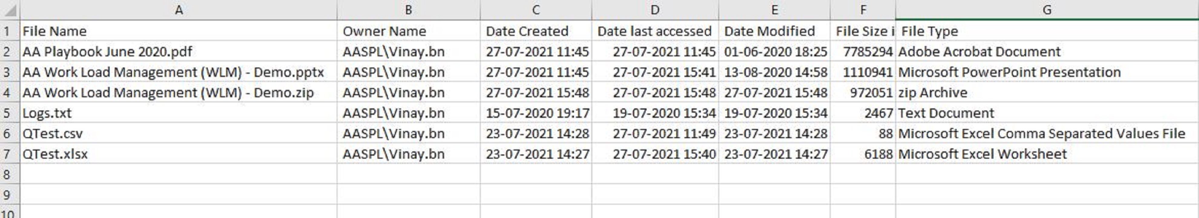 This bot prompts the user to select the folder where the user is interested in fetching files properties such as file owner name, file domain name, and more
