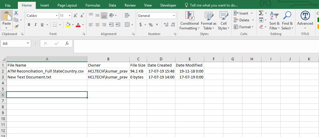 - Inputs: Complete Path of Folder and Blank Excel File