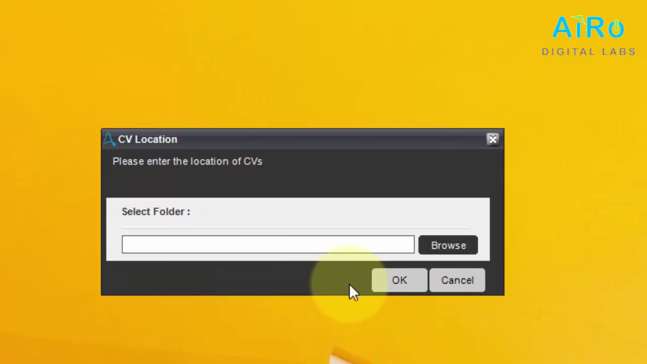 - Inputs: Location of folder containing ResumesKeywords (skill-set)