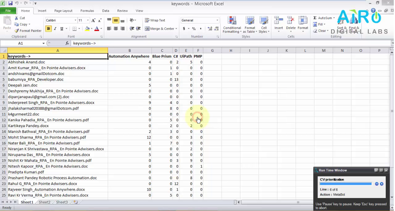 The resumes can be in PDF, DOC or DOCX format. This bot executes in the background.