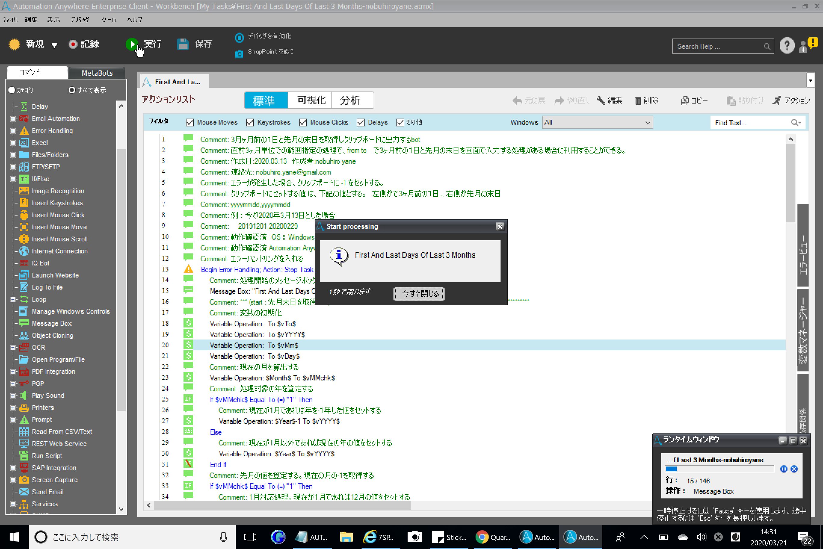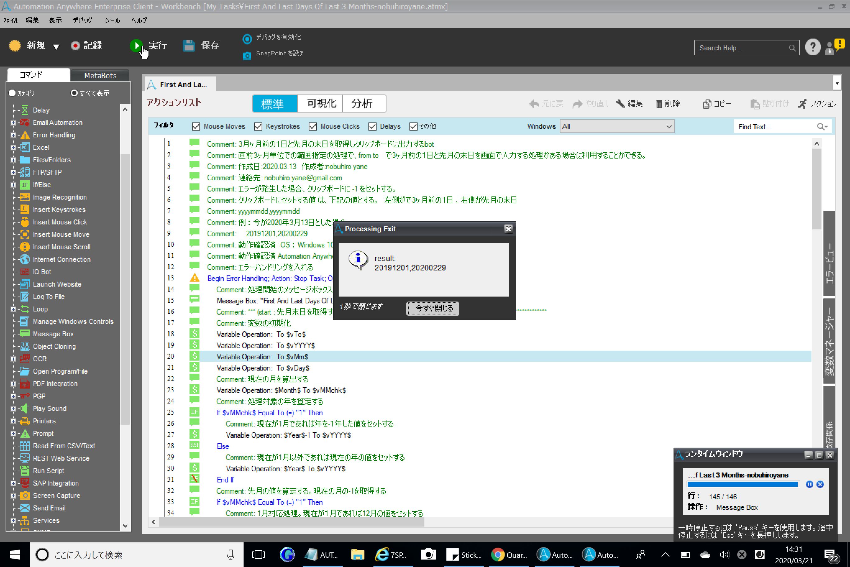 (1) The bot sets the first three months of the last three months and the last day of the last month on the clipboard as follows.