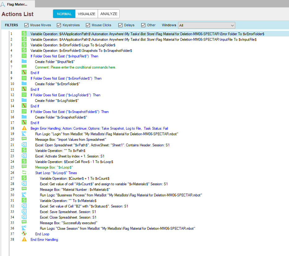 - Searches the material, fetching the value from the excel flags it for deletion and updates the status back in excel for further reference.