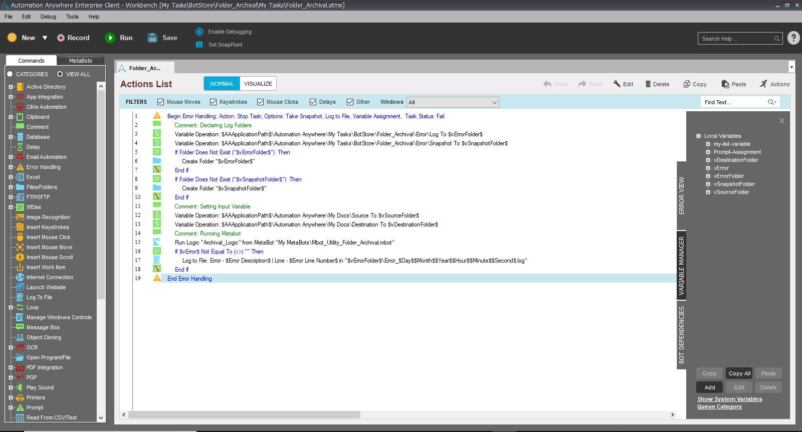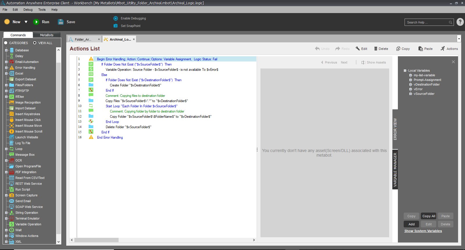 This bot(Metabot) allows you to archive entire folder to the destination folder