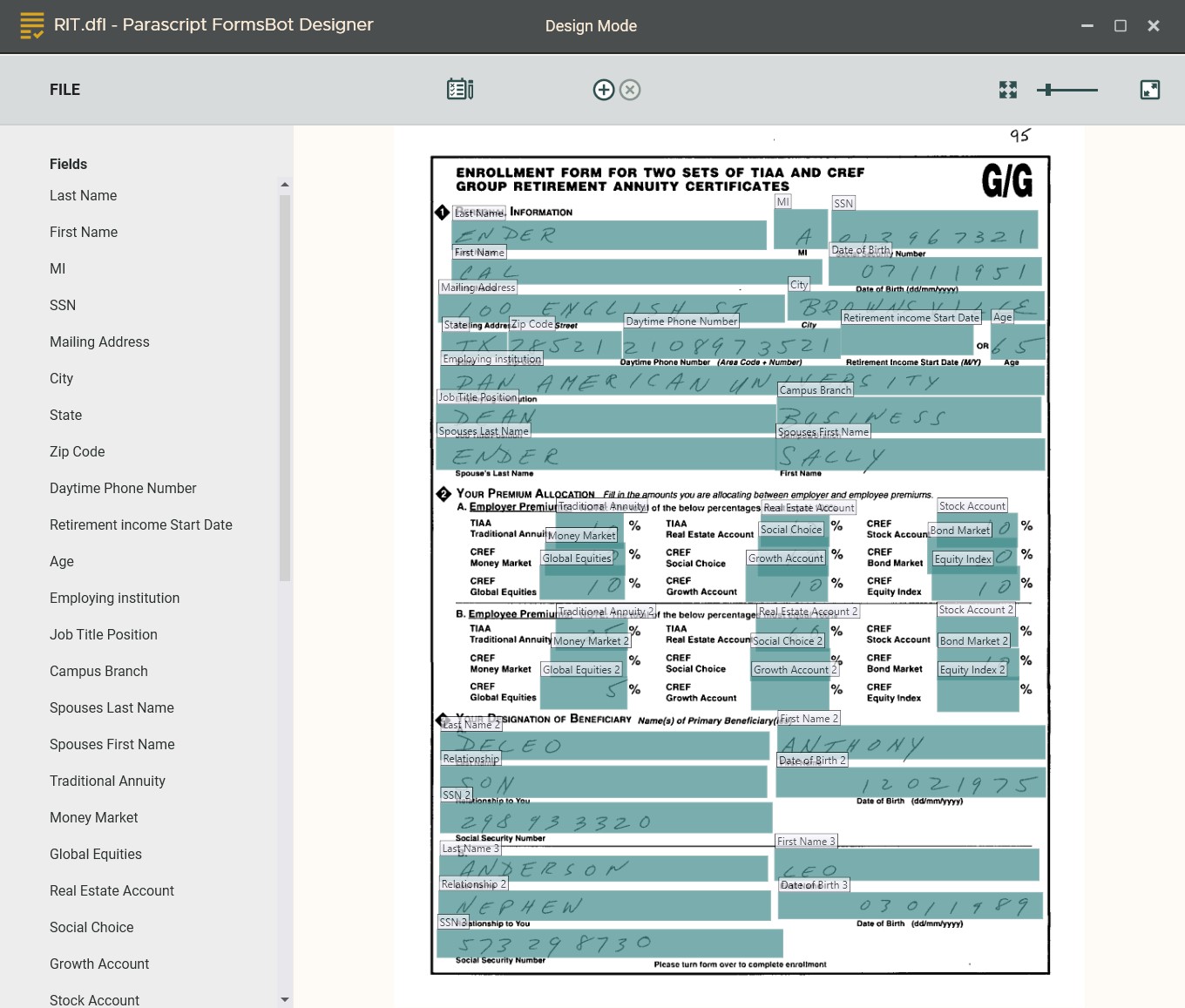 Parascript FormsBot.AI allows you to recognize any Alpha-Numeric fields that may be encountered on a structured form that is presented as a single-page image. The following formats are accepted: FormsBot.AI works with handwritten and machine-printed text. The product works with fields located on a single line. FormsBot.AI includes a FormsBot.AI designer tool that offers a user-friendly graphic interface that allows the user to quickly prepare a form layout description for further recognition. FormsBot.AI outputs data in the form of a dictionary that includes field keys and the corresponding recognized field values. FormsBot.AI also automatically registers results in a .csv file. FormsBotAI.dll included in the delivery allows programmers to enable forms recognition with a minimal footprint and higher flexibility.