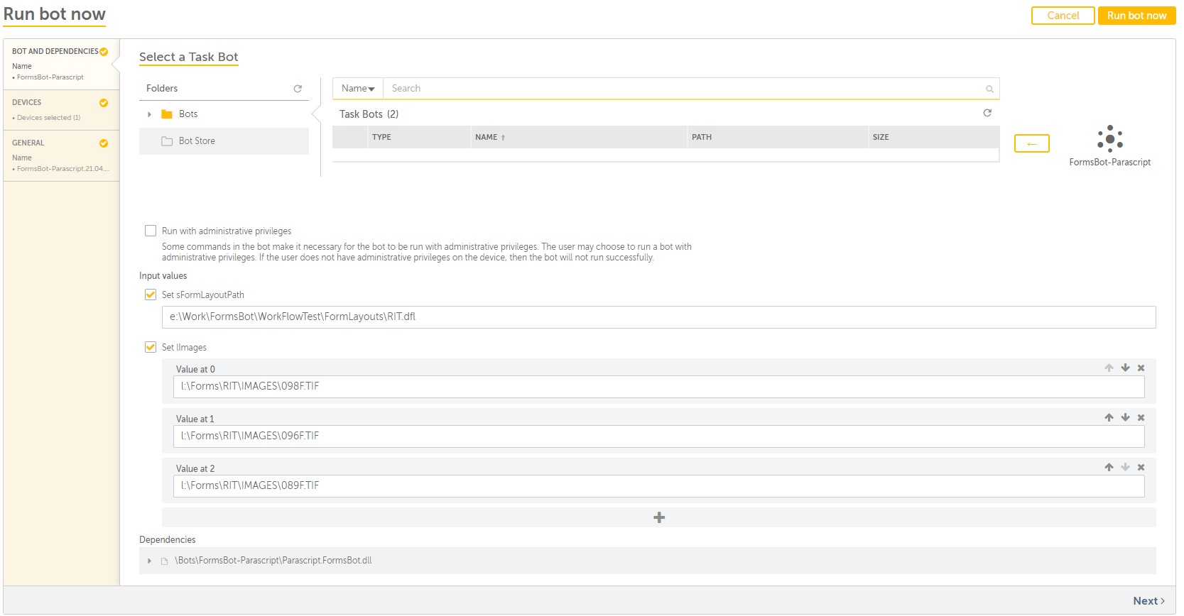 - Parascript FormsBot.AI Recognition Runtime (see Installation Guide)