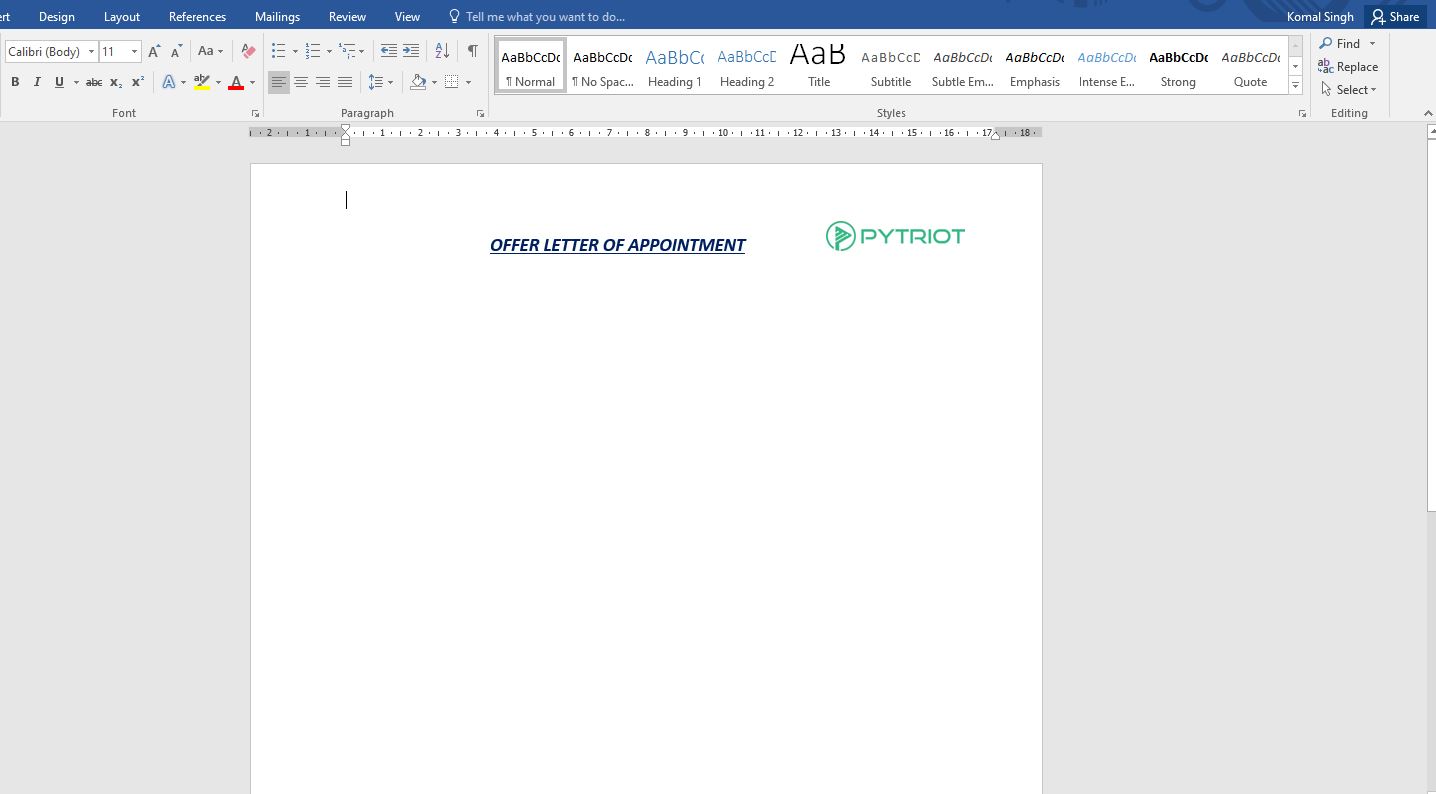 - Offer letter template in word document format