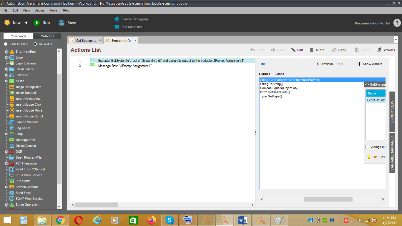 - This bot provides properties for getting information about the computer