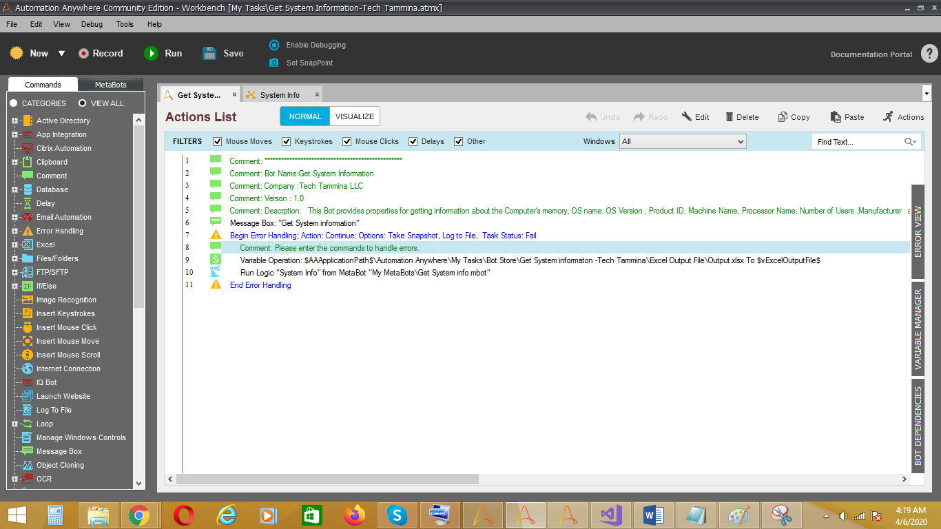 This bot provides properties for getting information about the computer's memory, OS name, OS version, product ID, machine name, processor name, etc