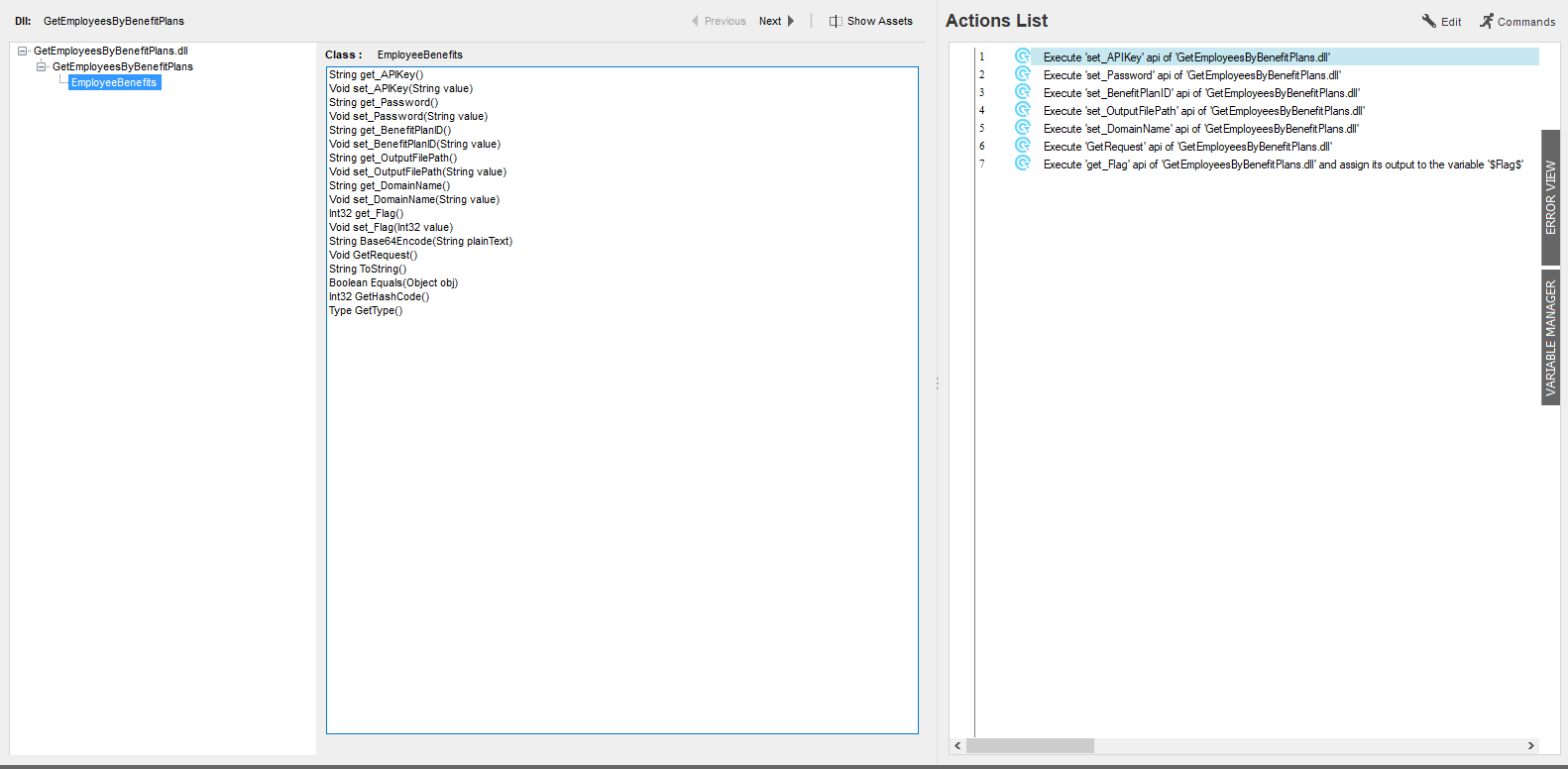 - Inputs: API Key, Domain Name, Password, Benefit Plan ID, Output File Path