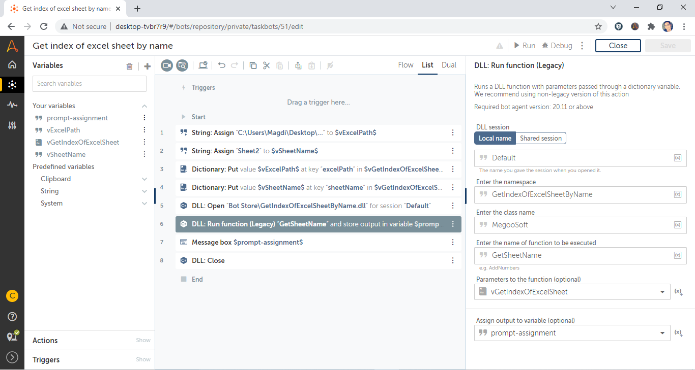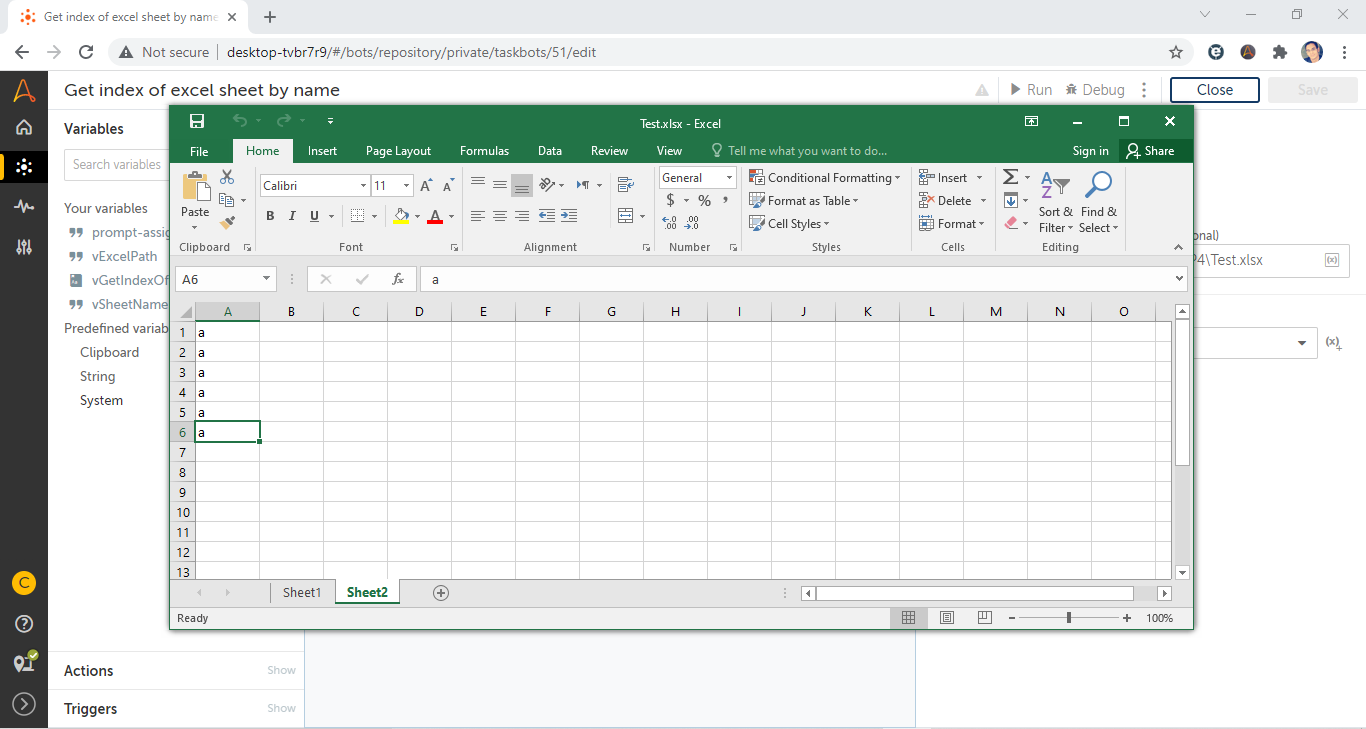 This bot gets the index of the Excel sheet by name. you can get the index of any sheet in Excel by its name