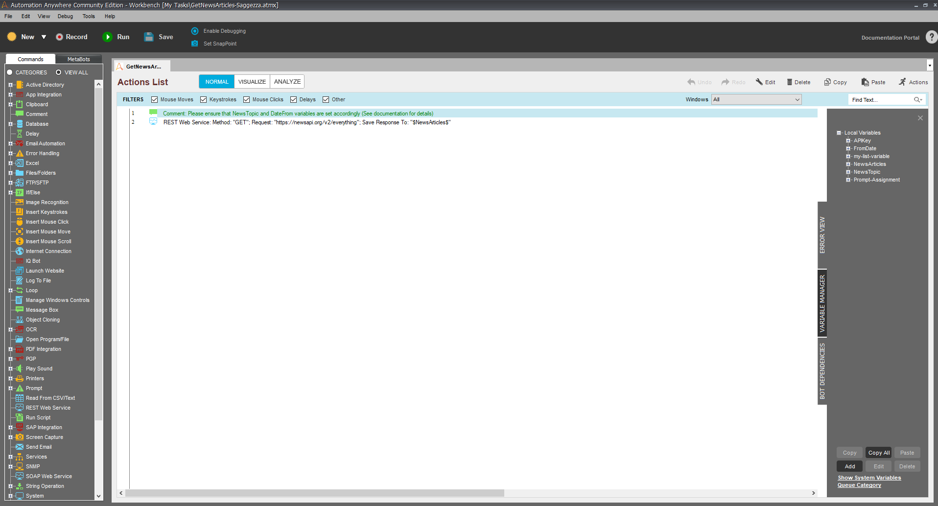 - Inputs: NewsTopic - Subject on which to base the news search, DateFrom - Date from which data has be retrieved, APIKey - Key to access API