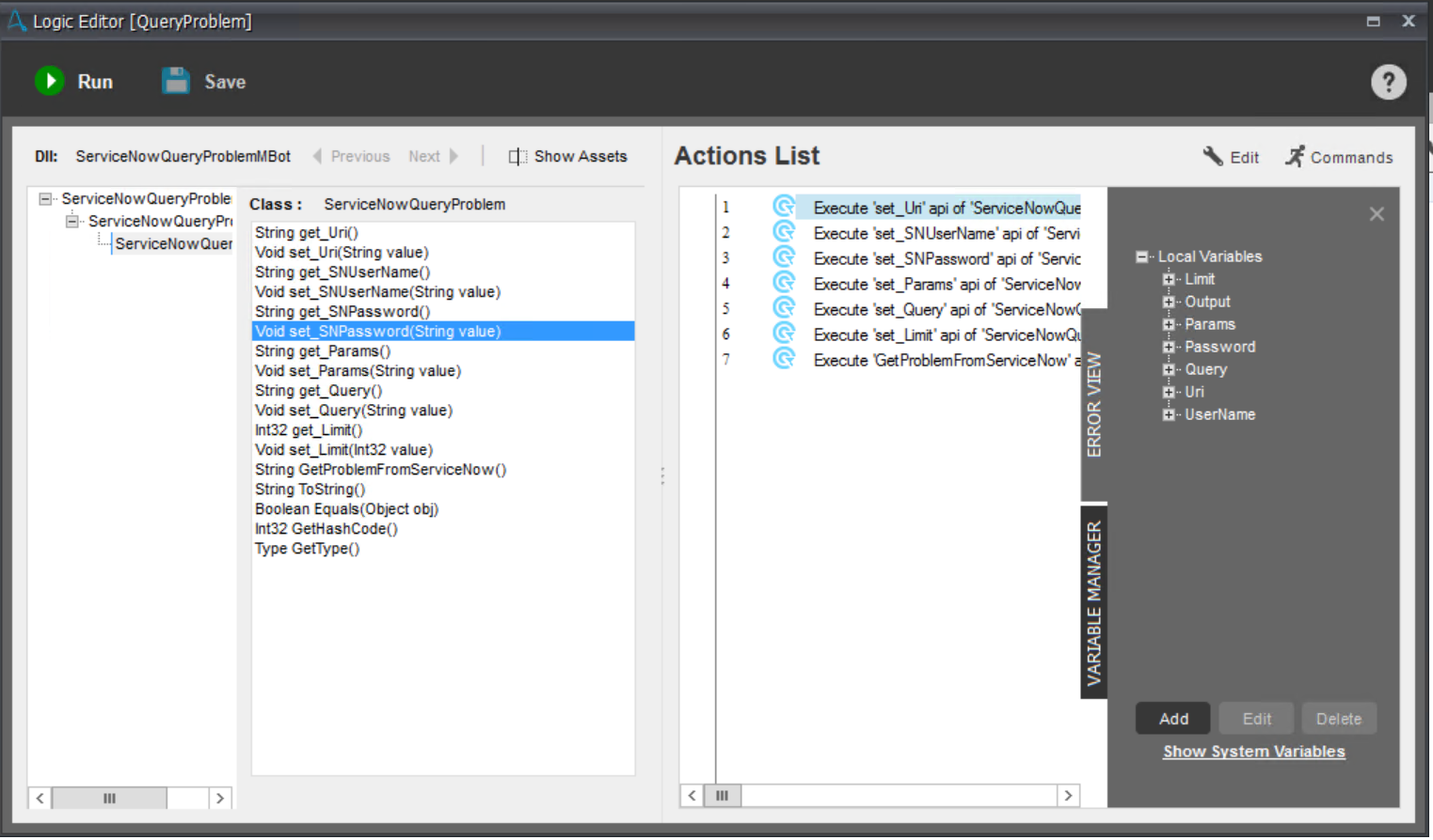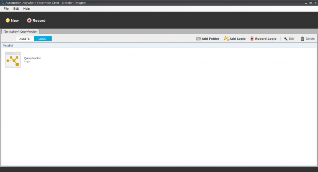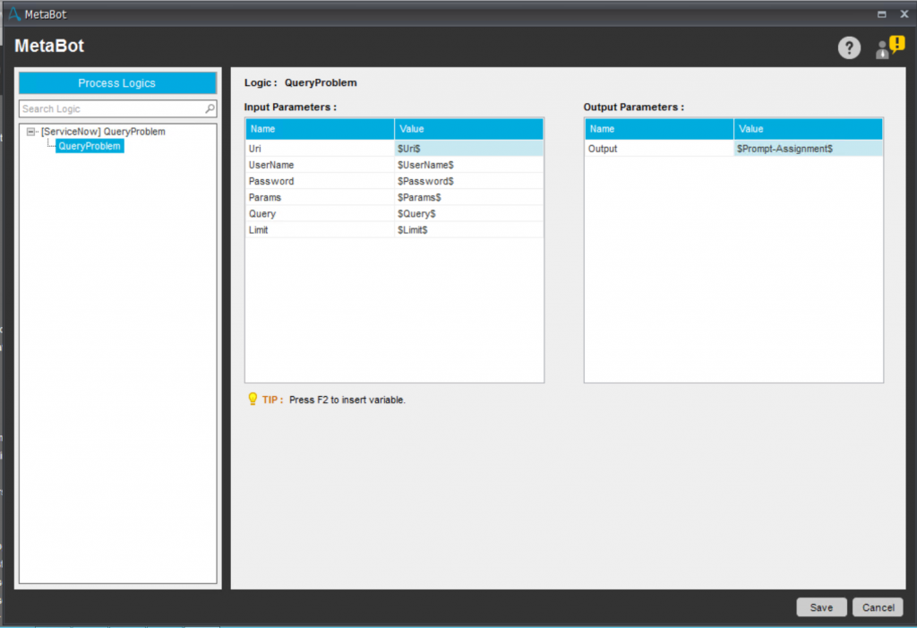 This bot automates the process of retrieving problem tickets in ServiceNow. Provide the bot (and underlying MetaBot) with a ServiceNow URL, username, and password (among other required fields in order to retrieve a problem ticket in ServiceNow) - and the bot will automate the process of retrieving Problem Ticket details.