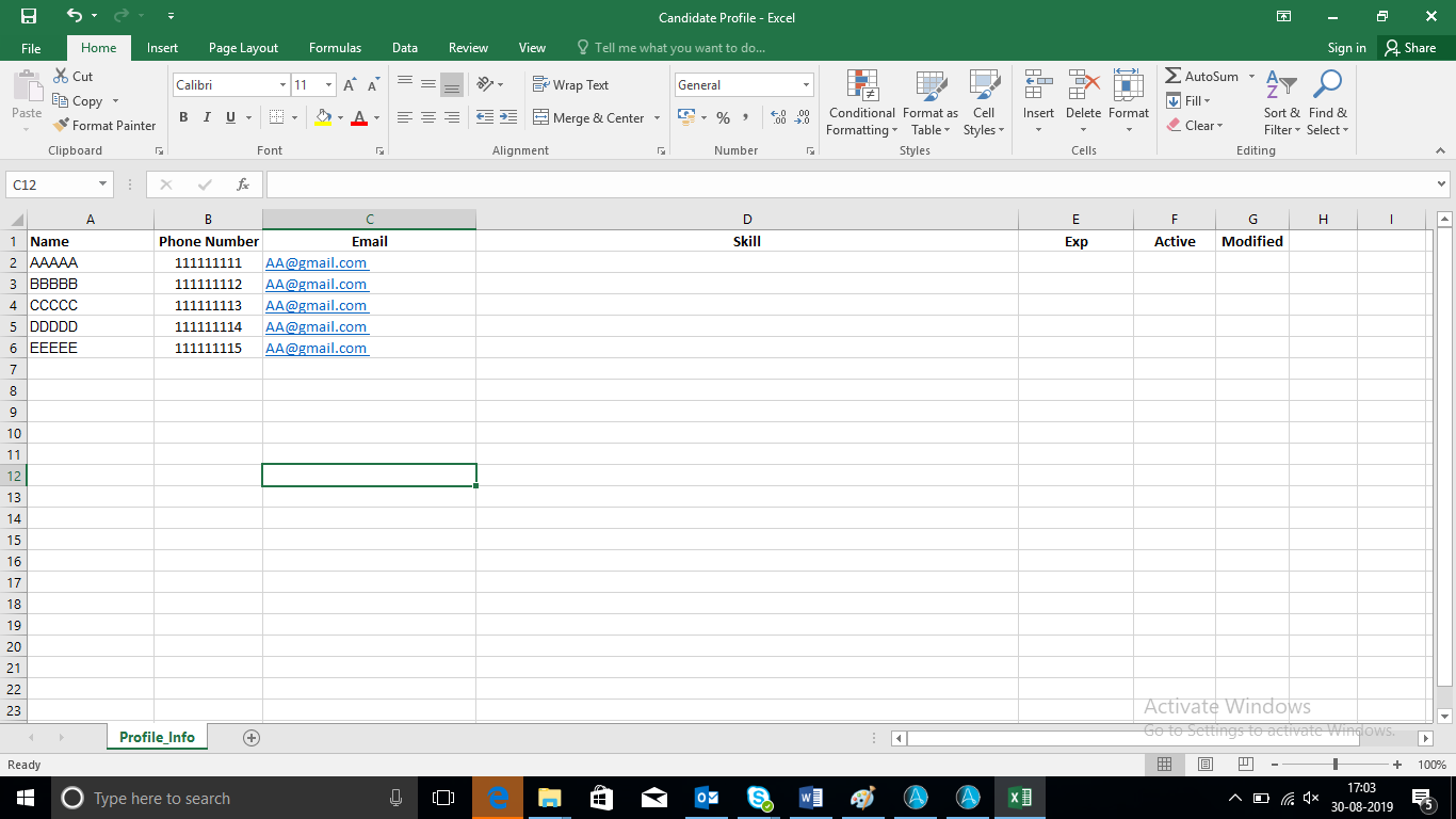 Input: An Excel file (Input data file) with some basic details of candidates like Name, Contact Number, Email.