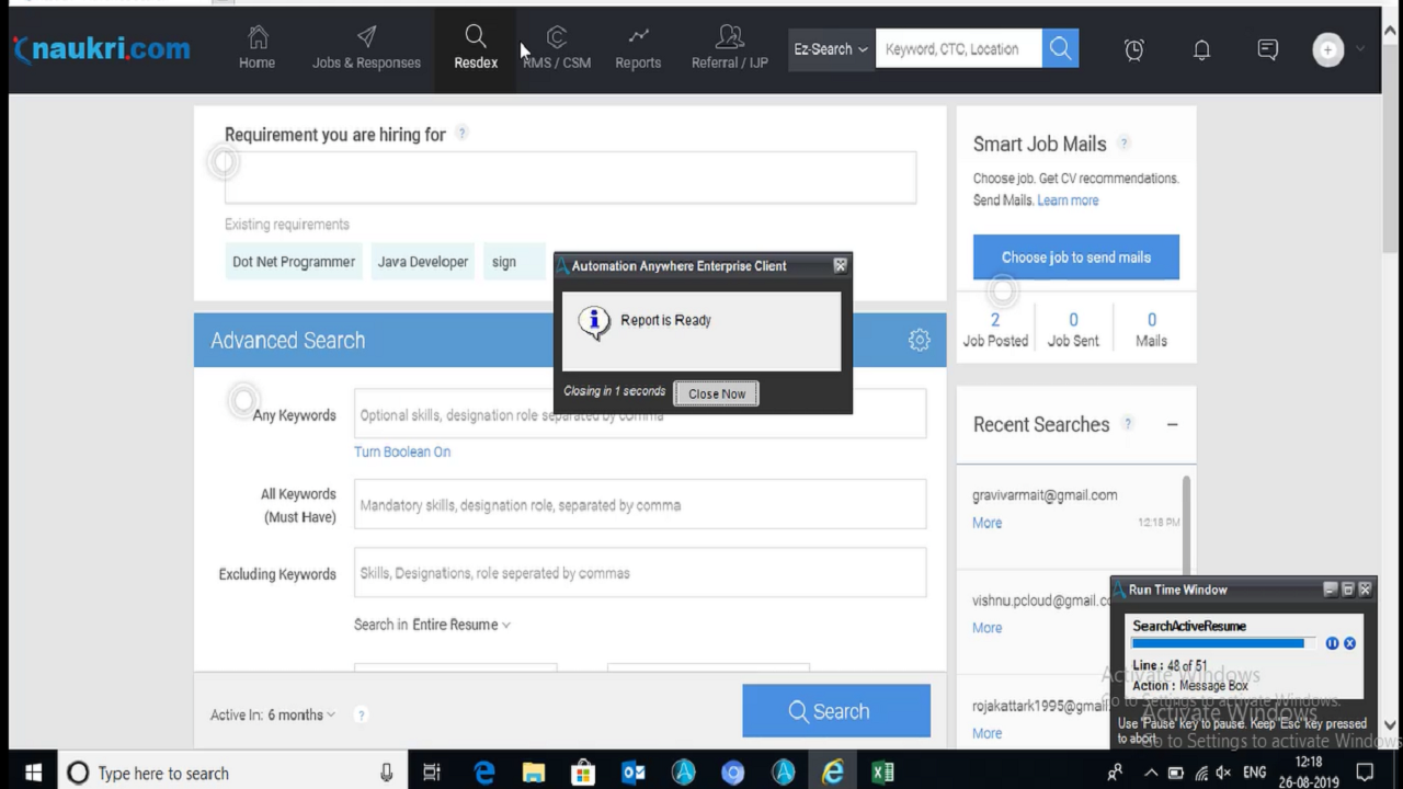 Output: Bot will fetch last active and modified date along with some basic details as skill or designation and total experience.