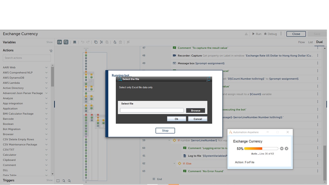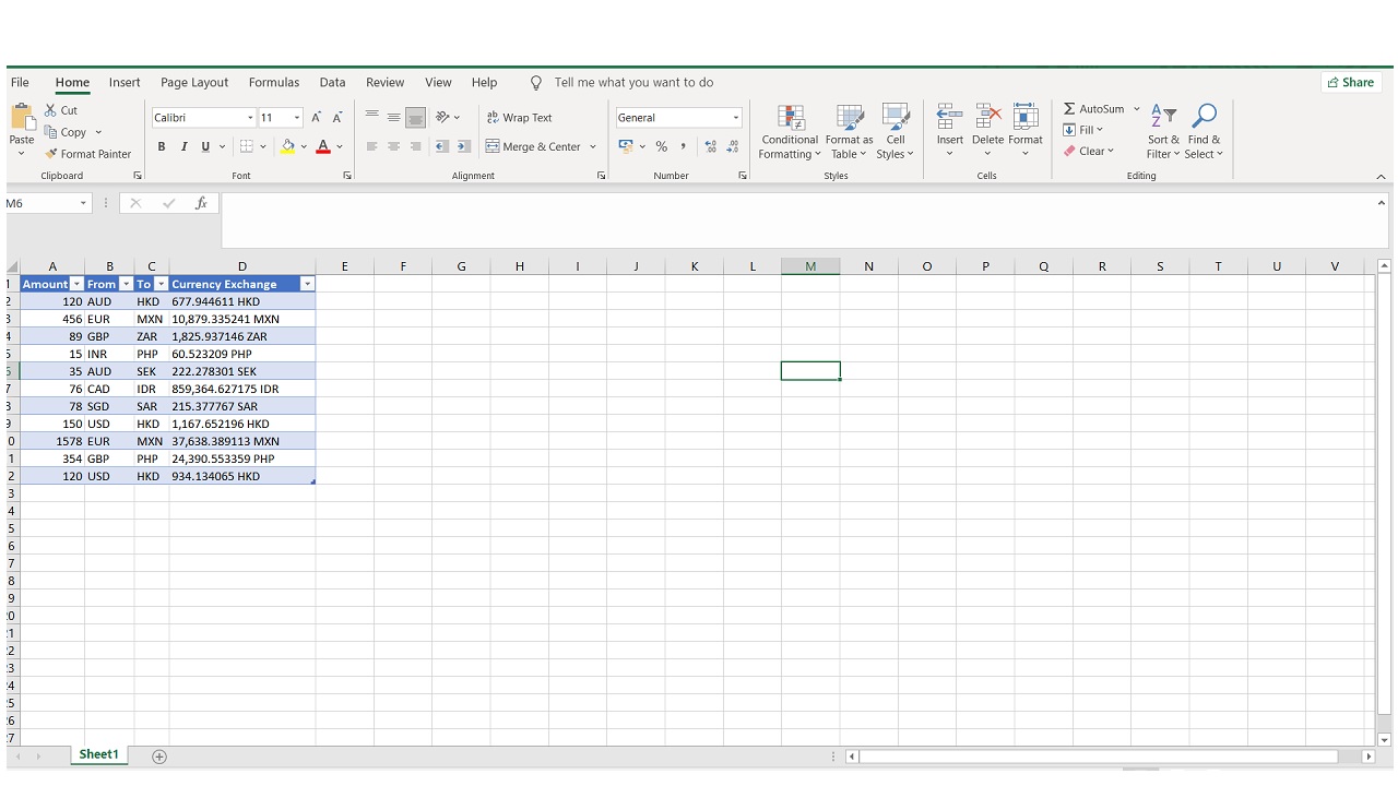 All Global currencies on a Single 2-D Matrix view are plotted on a single Excel worksheet making it a single source of currency exchange data. The bot uses Xrate.com website which is a universally trusted and popular website to extract publicly available currency exchange listings on the Browser UI. The bot generates global currency exchange rates for specified inputs. There is an input file that includes the data to be a loop through it for creating the exchange rates. The output will be stored in the same excel sheet itself.