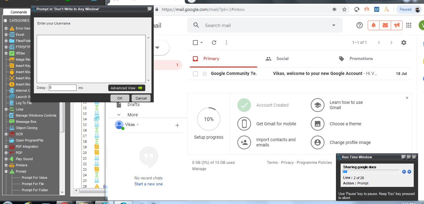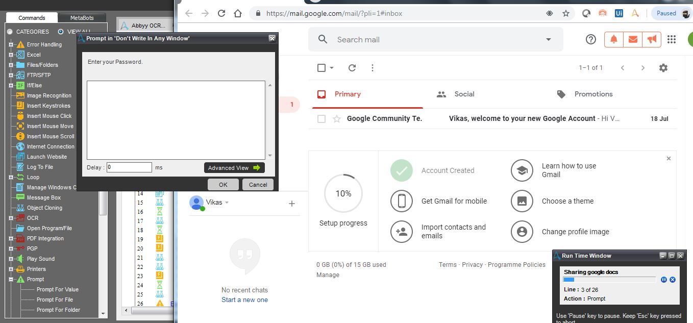 Bot will automatically login to google mail and opens Google docs. Shares the document with someone by entering his/her google mail.