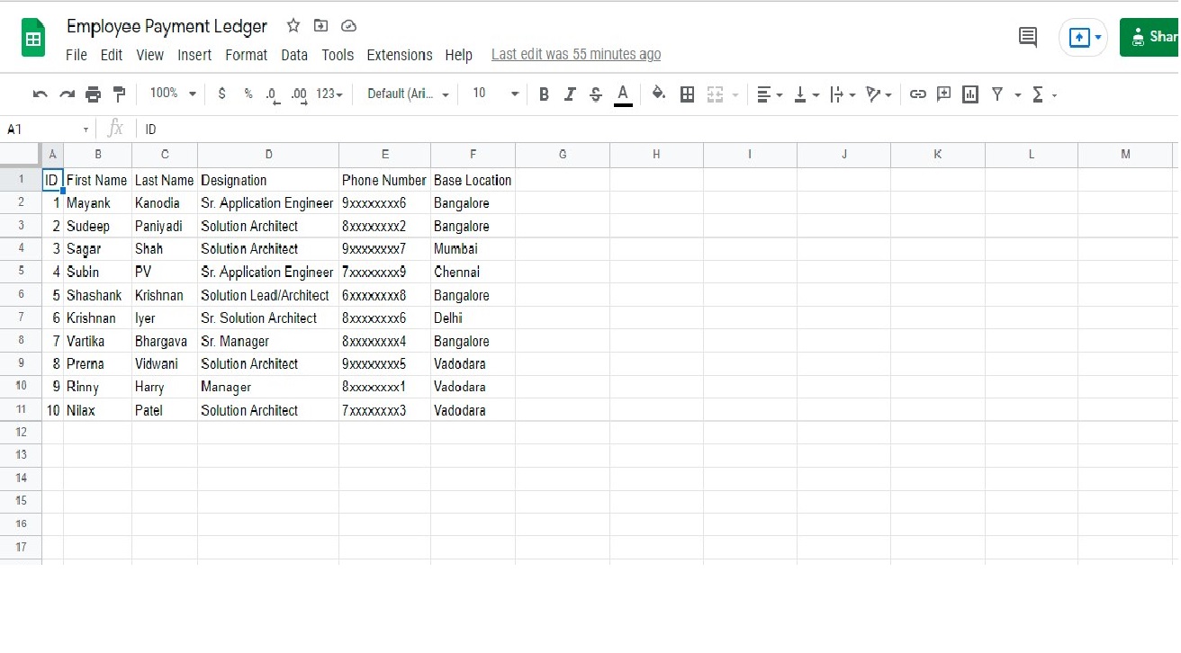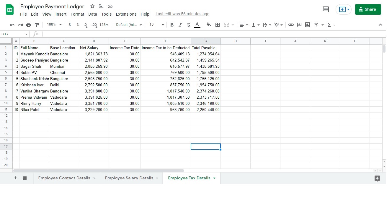 Input: Workbook including Employee Contact Details and Basic Salary Details