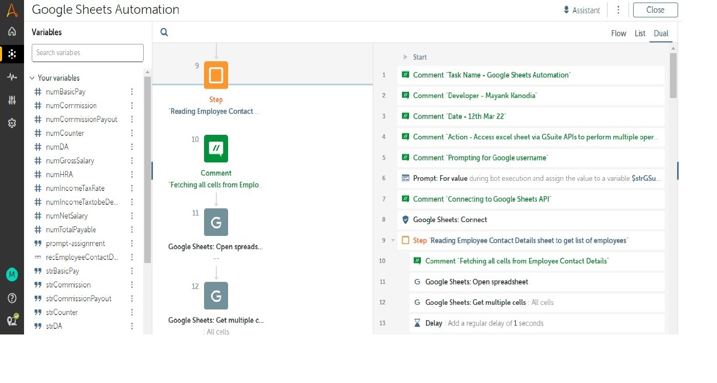 This bot connects to Google Sheets API via Google OAuth Client to read and edit multiple worksheets to calculate the Salary and Tax details of 10 employees of an organization.