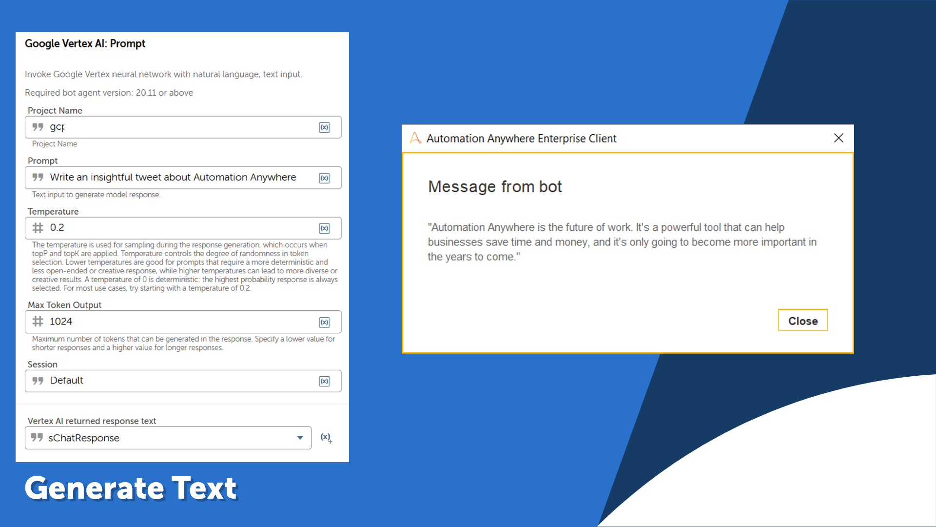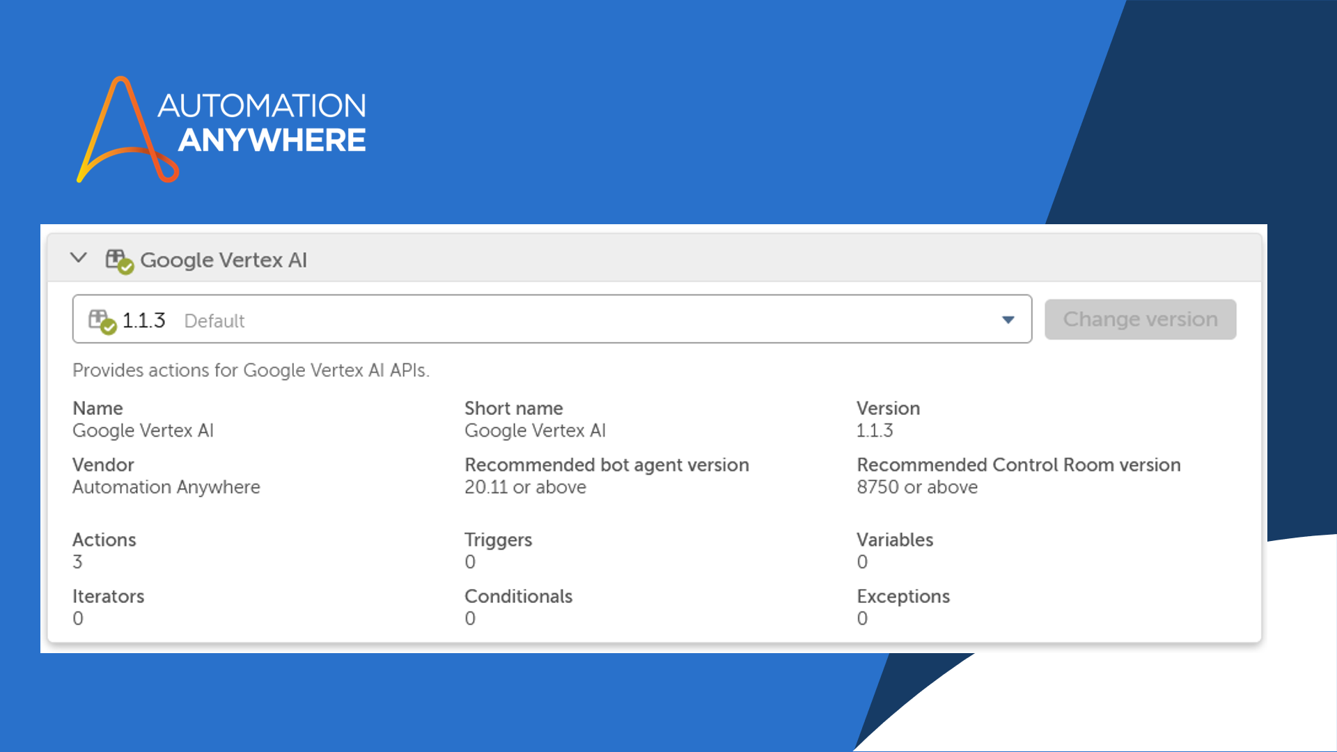 Why wait? Unlock the future of AI-powered automation by integrating the Google Vertex AI Automation Anywhere package into your environment today!