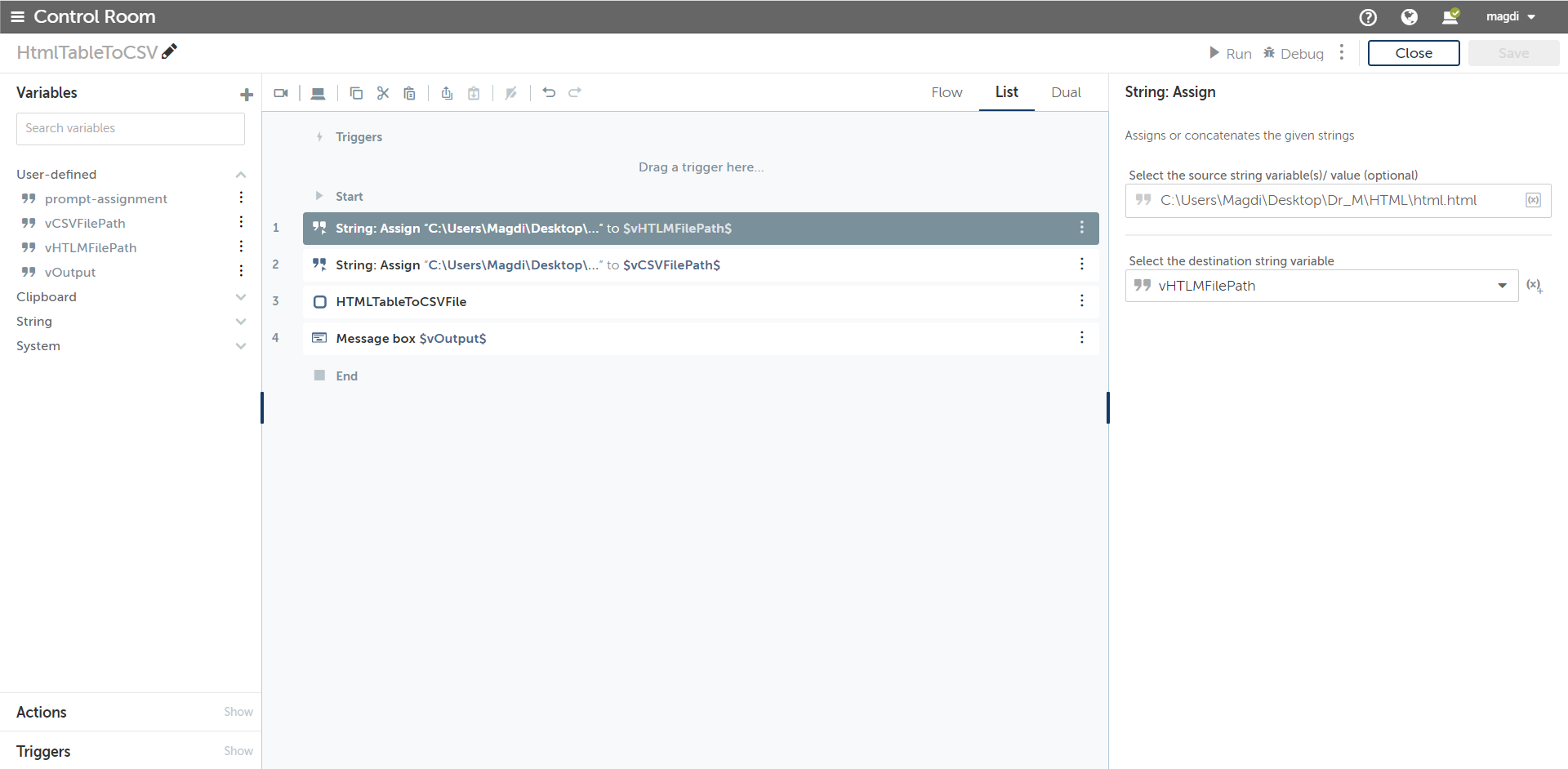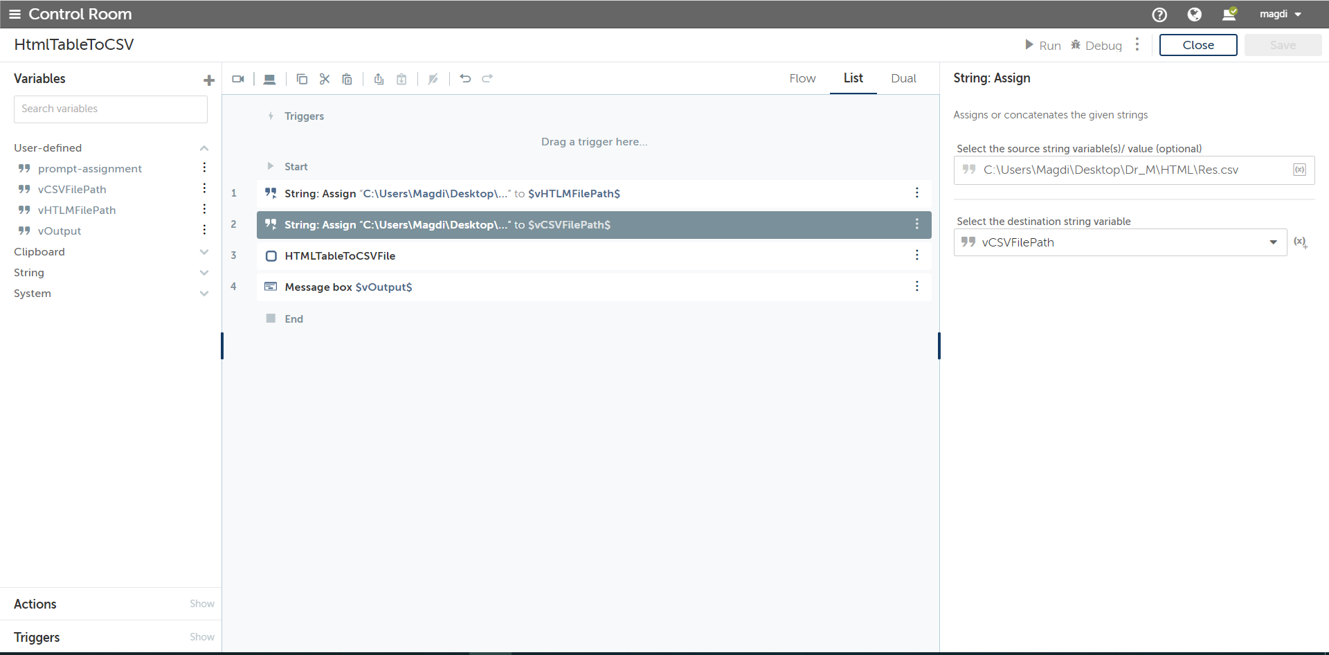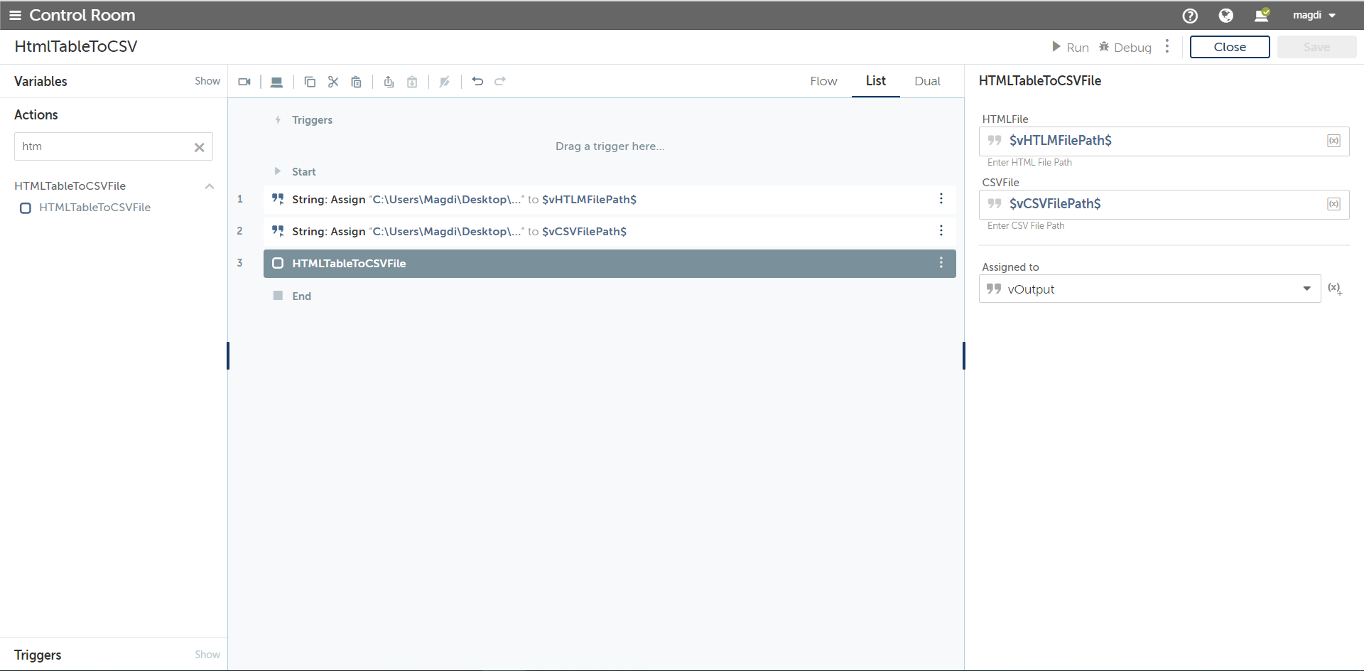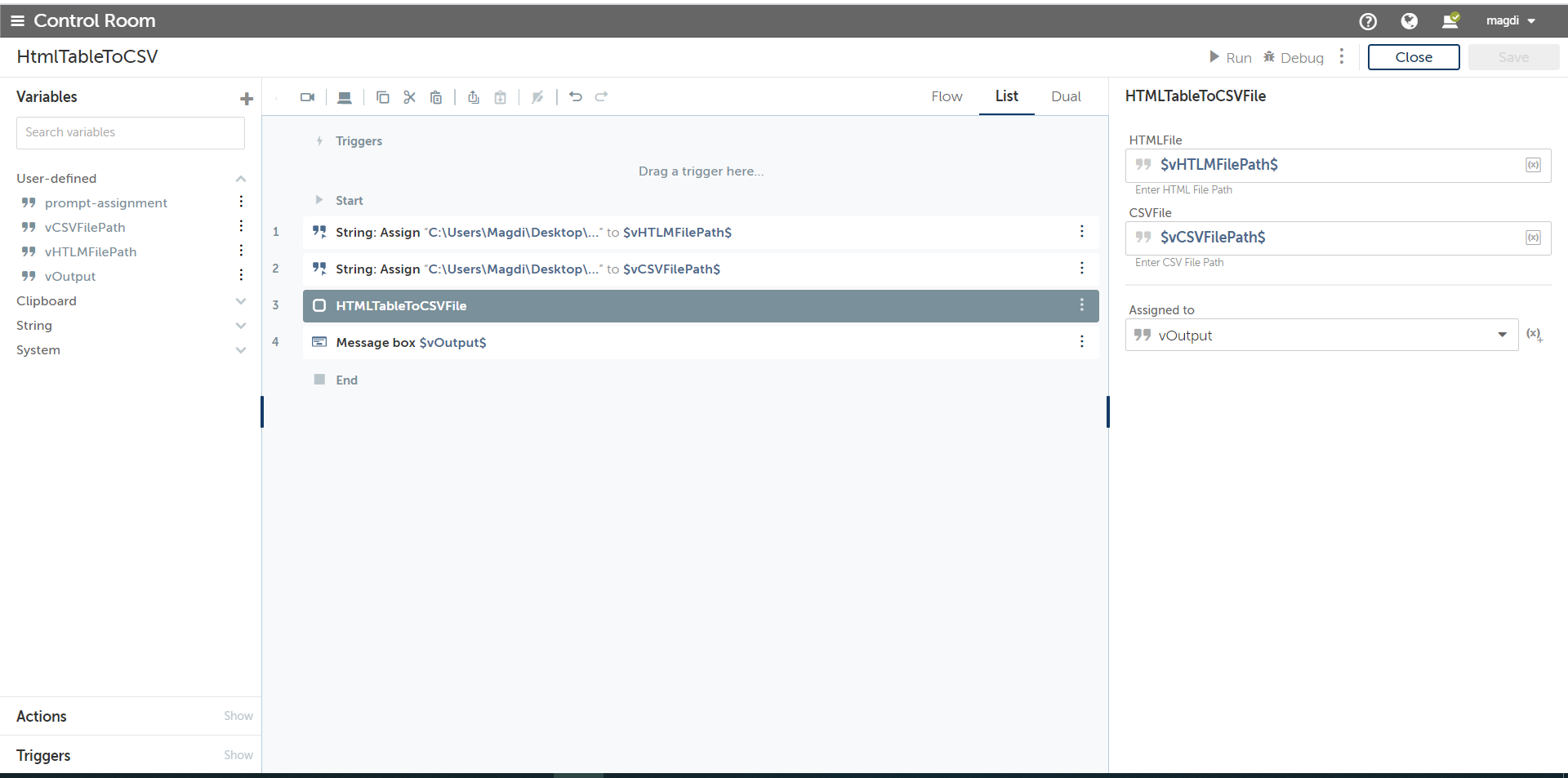 - Variable contains: Full Path of HTML file that contains HTML table/input