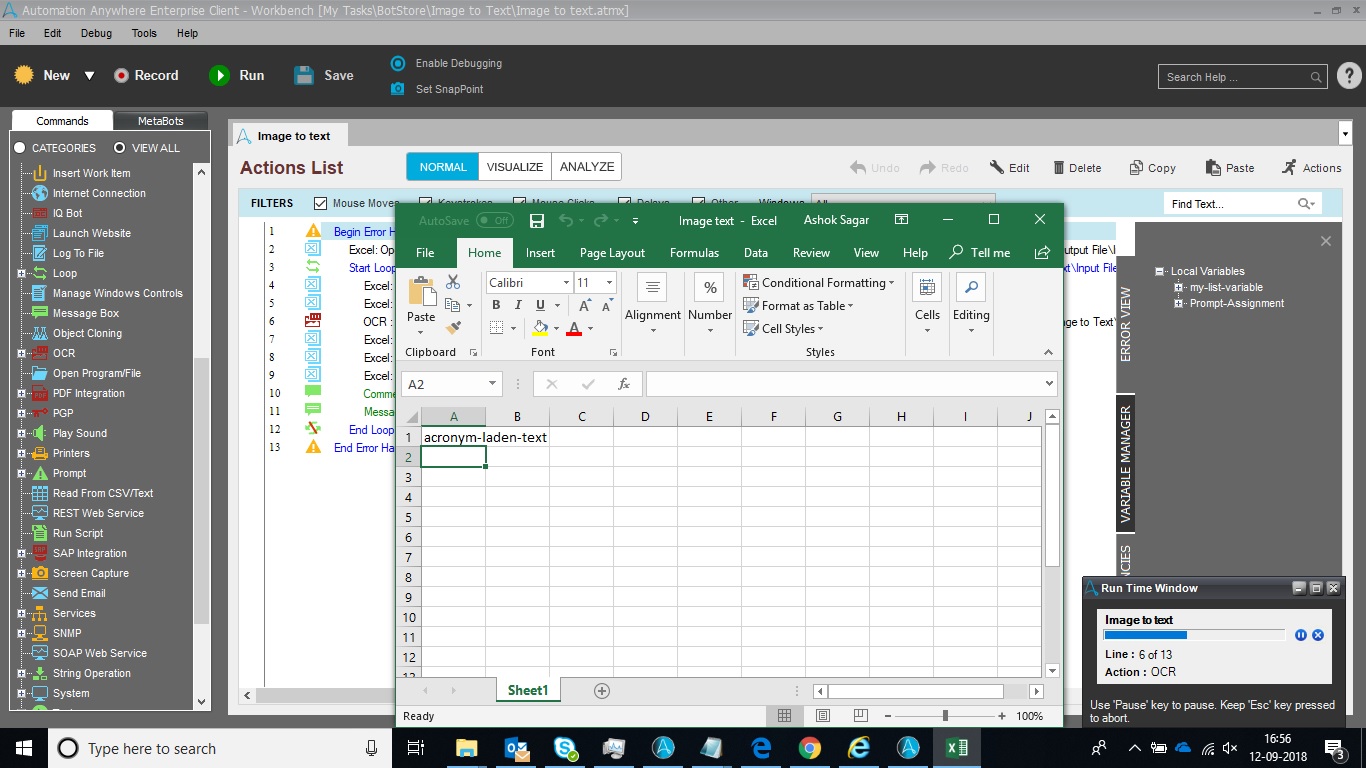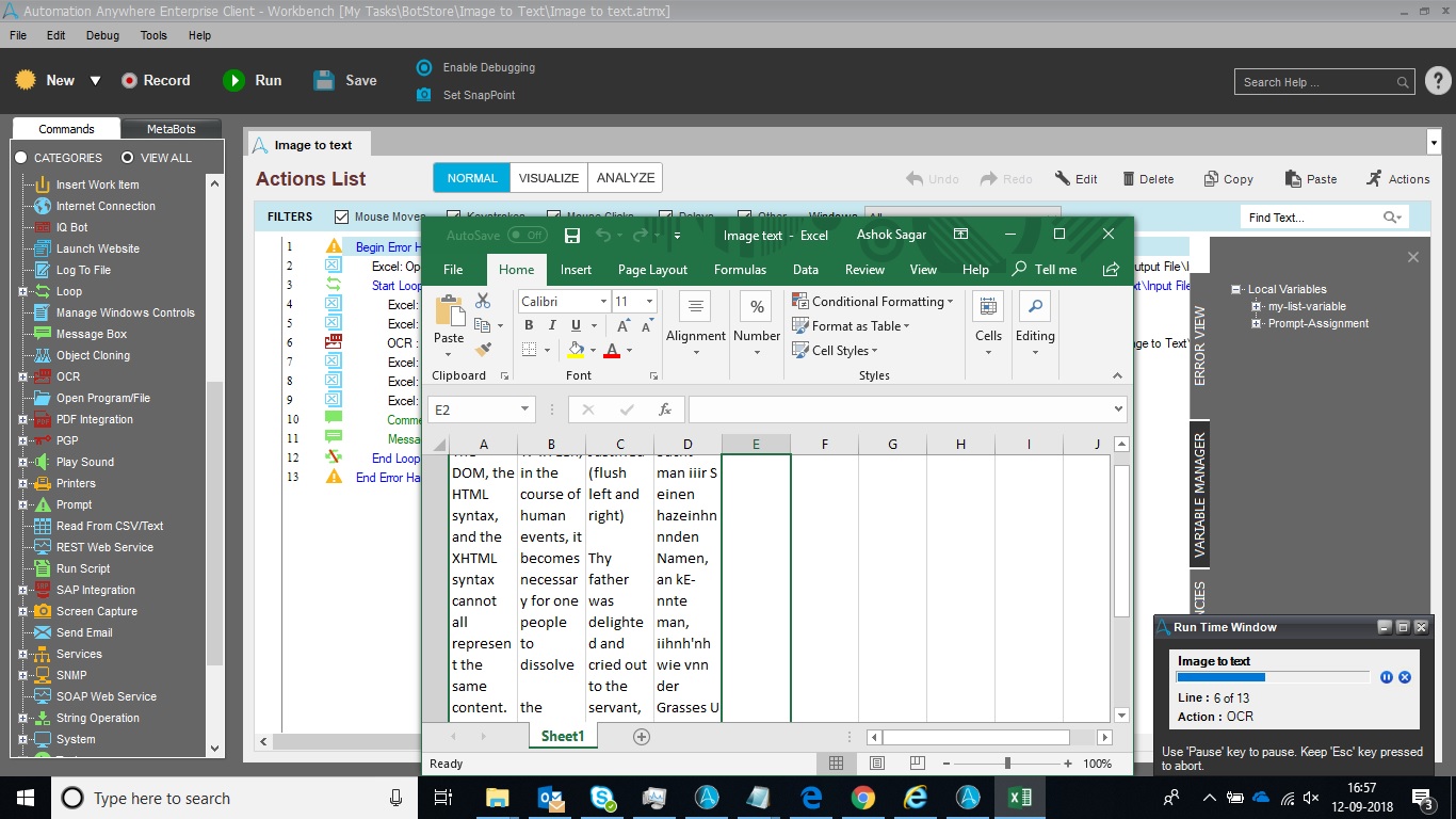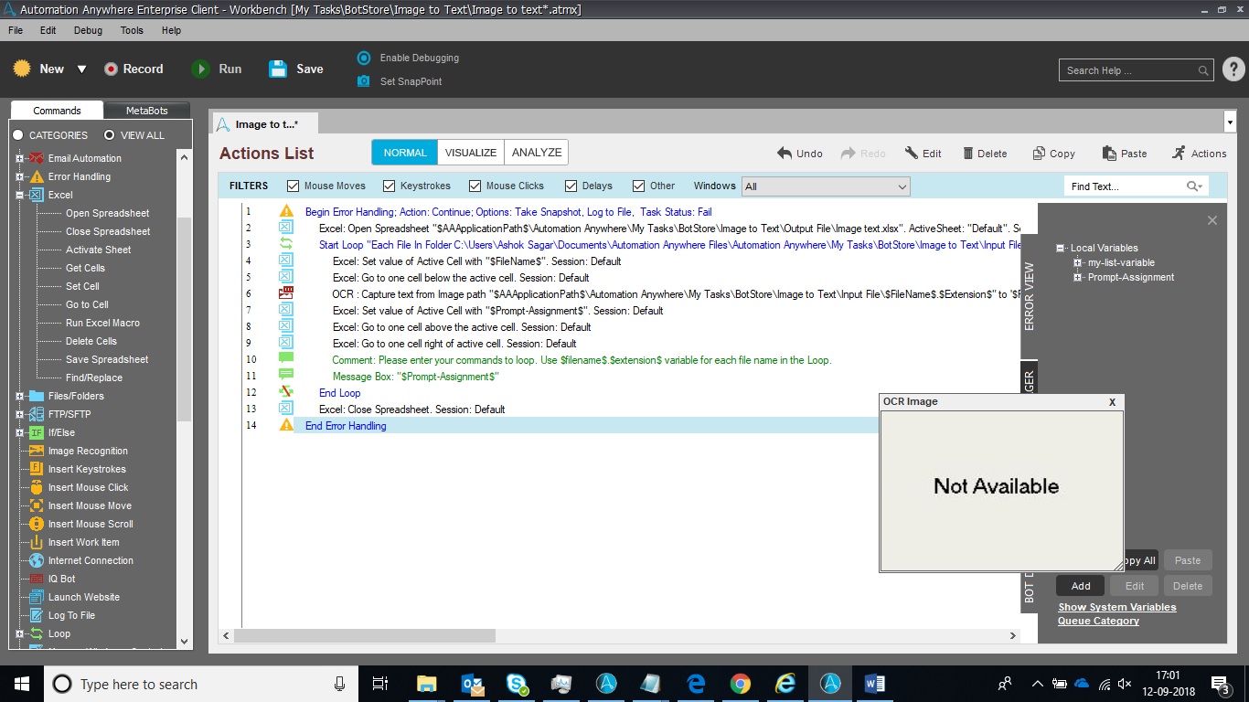 Bot converts the image files which have text into the text and updates the output Excel file with the extracted text along with the names of the files and the images as headers
