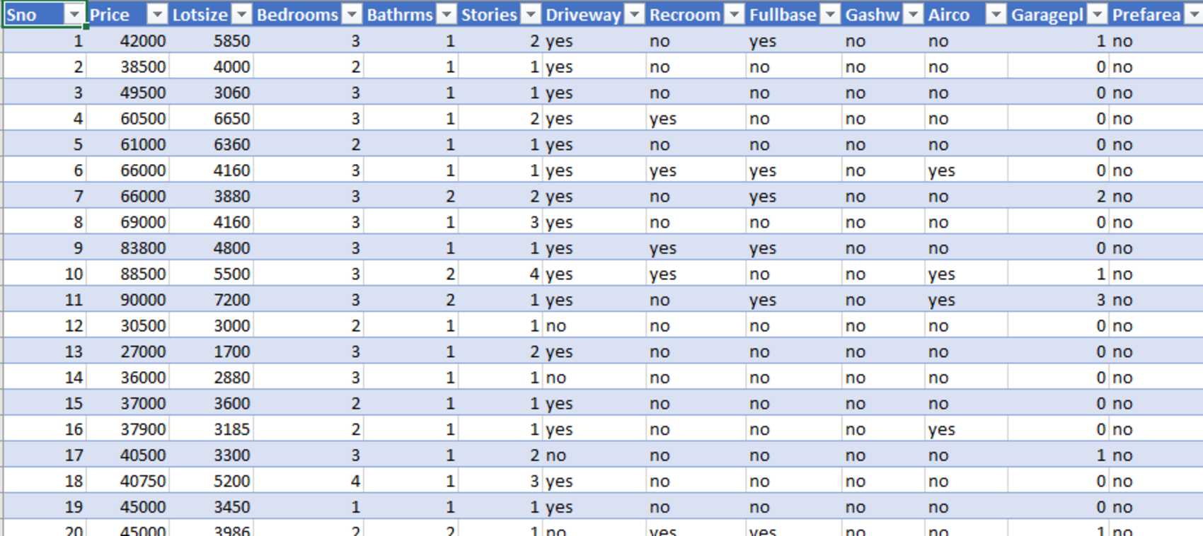 - Ignore Columns: Column name that the model should ignore while calculating correlation. For example: 'SNo','Driveway','Recroom'......