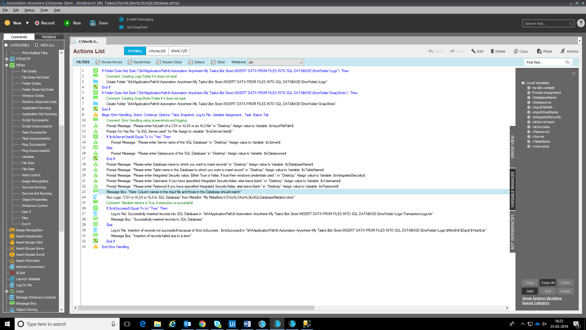 - SQL , Automation Anywhere v11.0