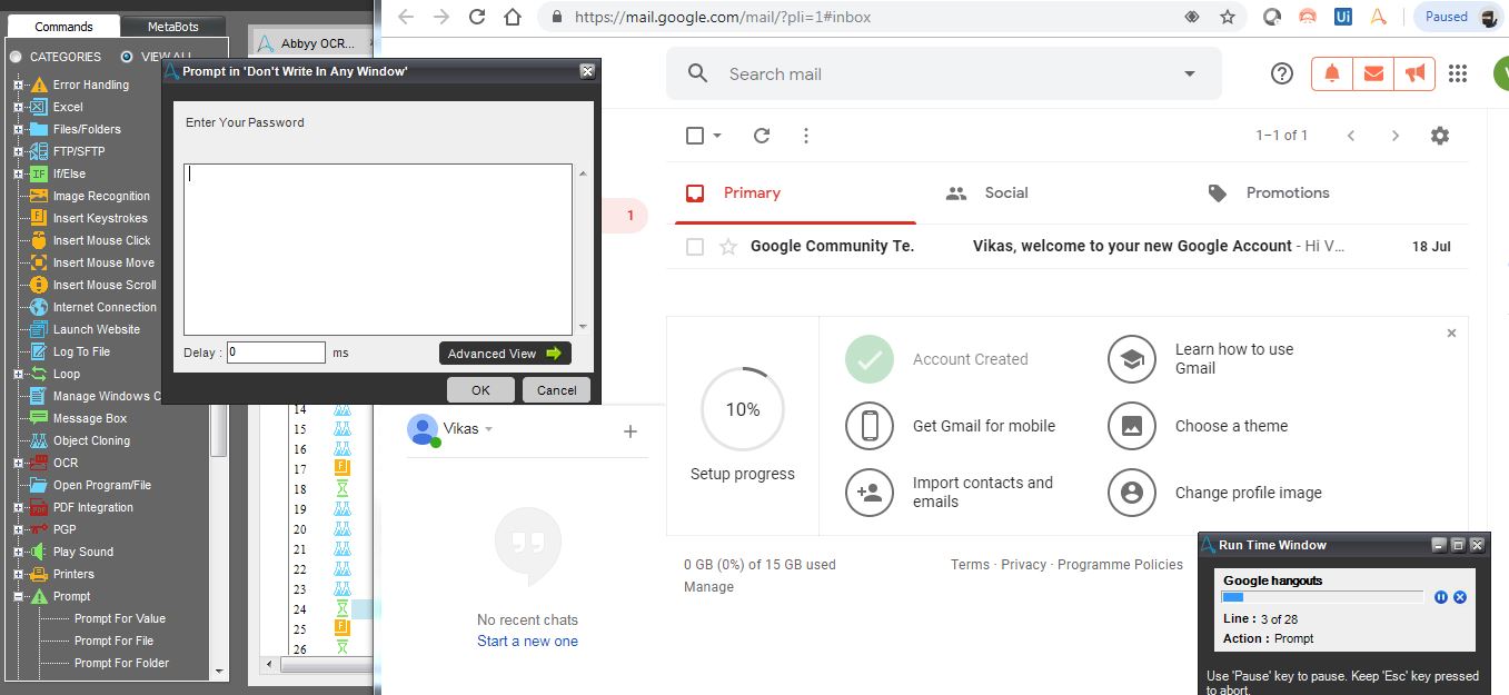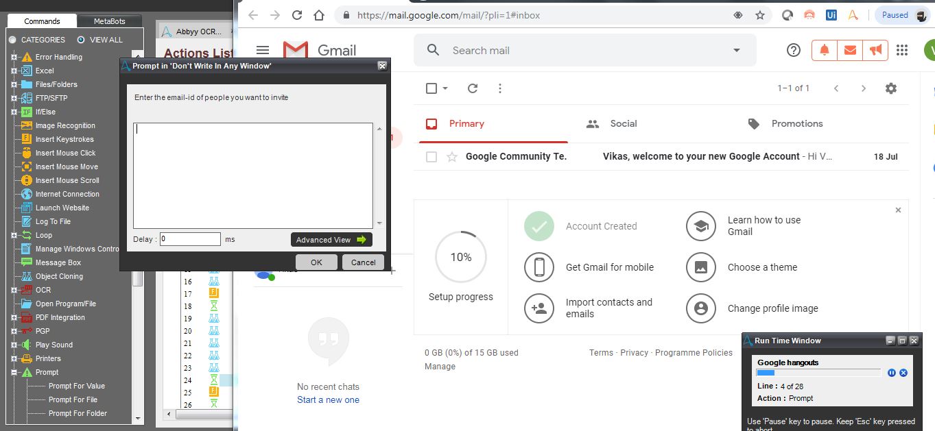 This bot will log into your Google account. Open google hangout and invites people on google hangout by entering his/her email.