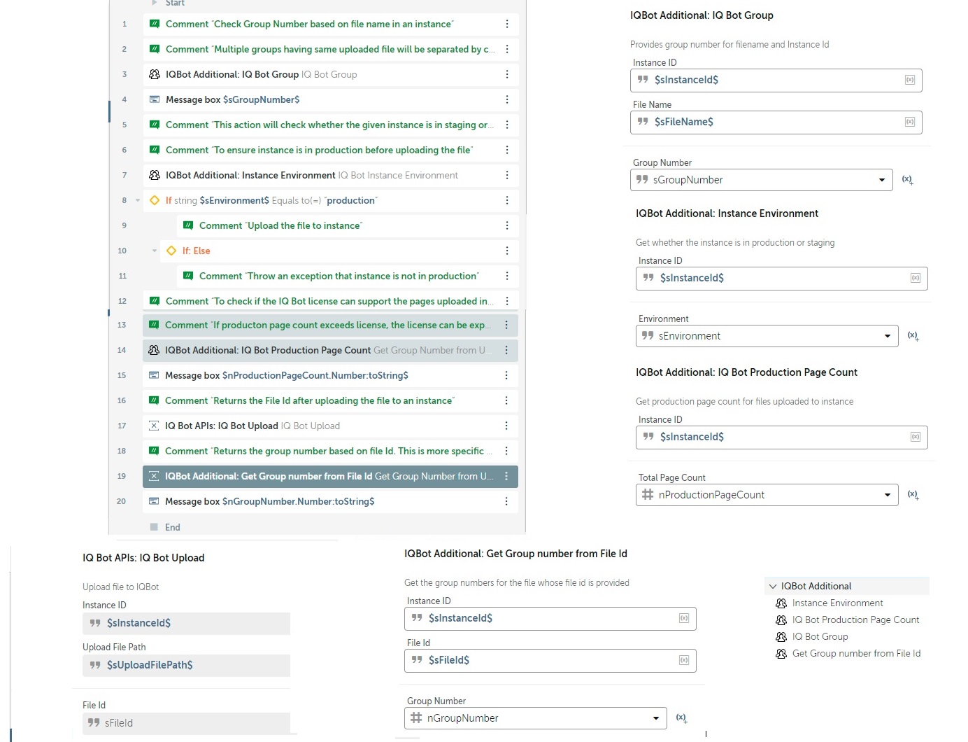 The IQ Bot Additional package helps us find the group numbers for a file based on the file name and instance Id. It can help the bot ensure the instance is in production before uploading a file to IQ Bot. It can check the number of pages consumed in production so the IQ Bot license can be renewed well in advance. It can be used to upload files to IQ Bot and generate a unique file id. It can also get the group number based on the unique file Id.