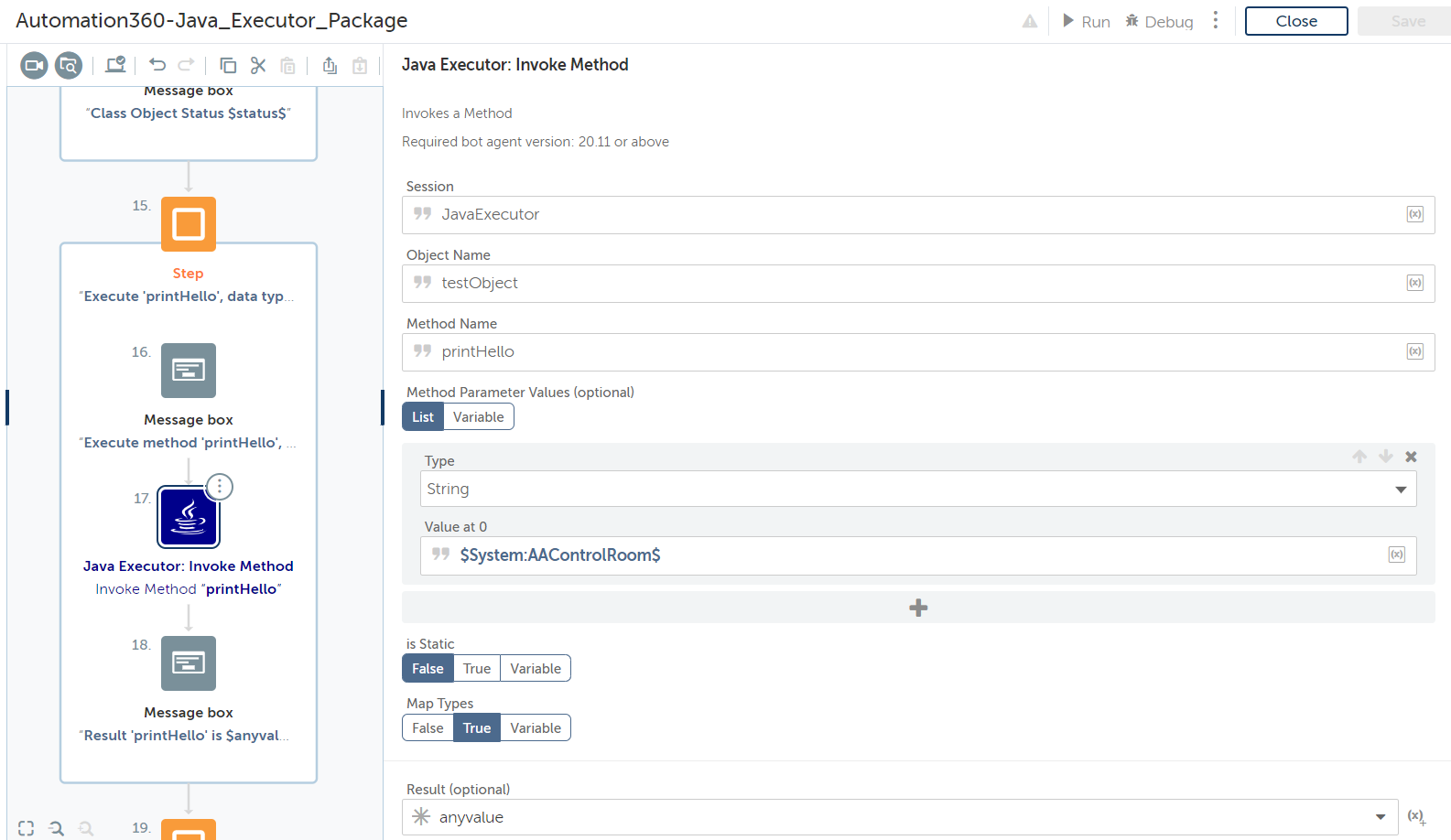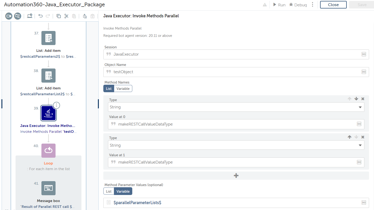 The package provides actions to load Java JAR files that contain executable Java classes. You can execute Java methods in a sequence or in parallel by using Java Threads.