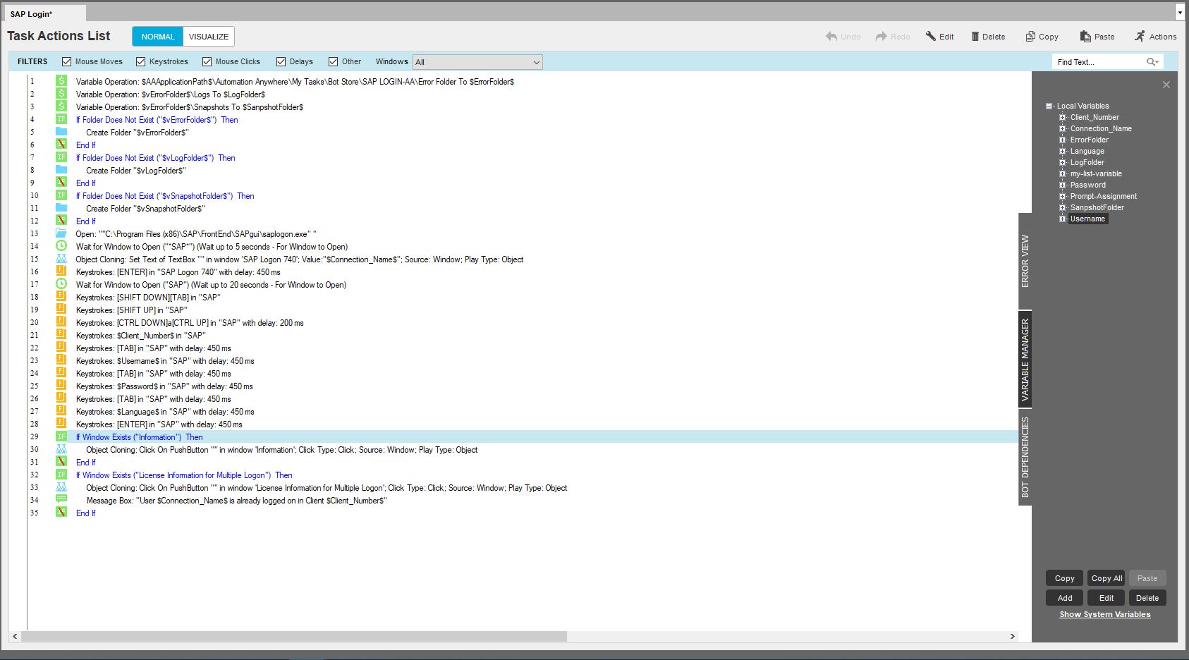 Install SAP Logon desktop application before running this bot. All input variables are mandatory here.