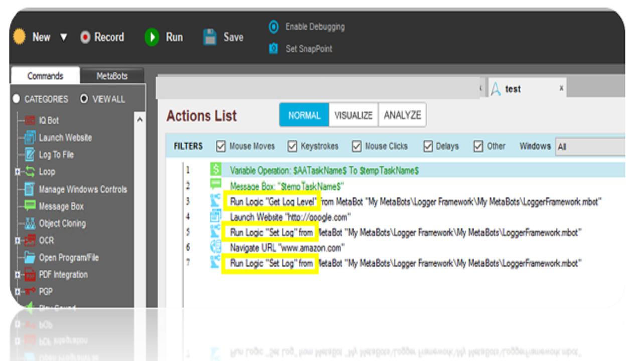 Advantages: With the logger framework, you will have meaningful, uniform, detailed log reports. This will reduce your issue analyzing time and also consume fewer resources as it only logs on the specified log level. You can apply this on a new project as well as an existing project. Just download the bot, perform one-time setup and you are good to go!