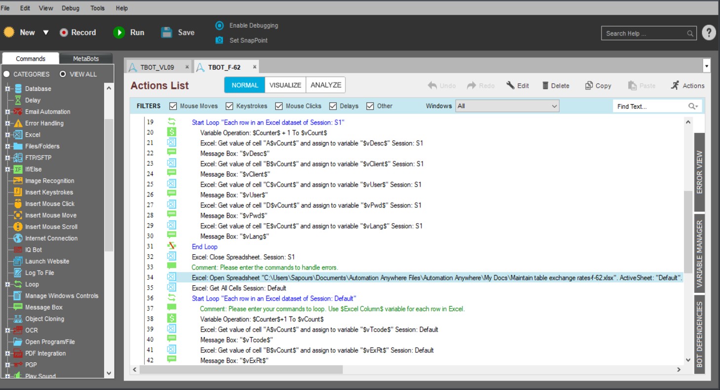 - Input Files: "Maintain table exchange rates f-62.xlsx", "Credentials.xlsx"