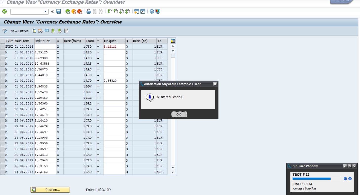This bot automates SAP transaction F-62 (Maintain Table: Exchange Rates).