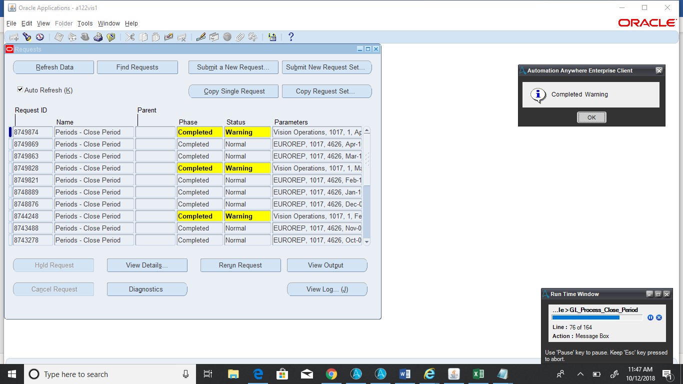 - The bot will use standard Oracle form – period maintenance form ensuring all validations are performed as if the values are entered manually.
