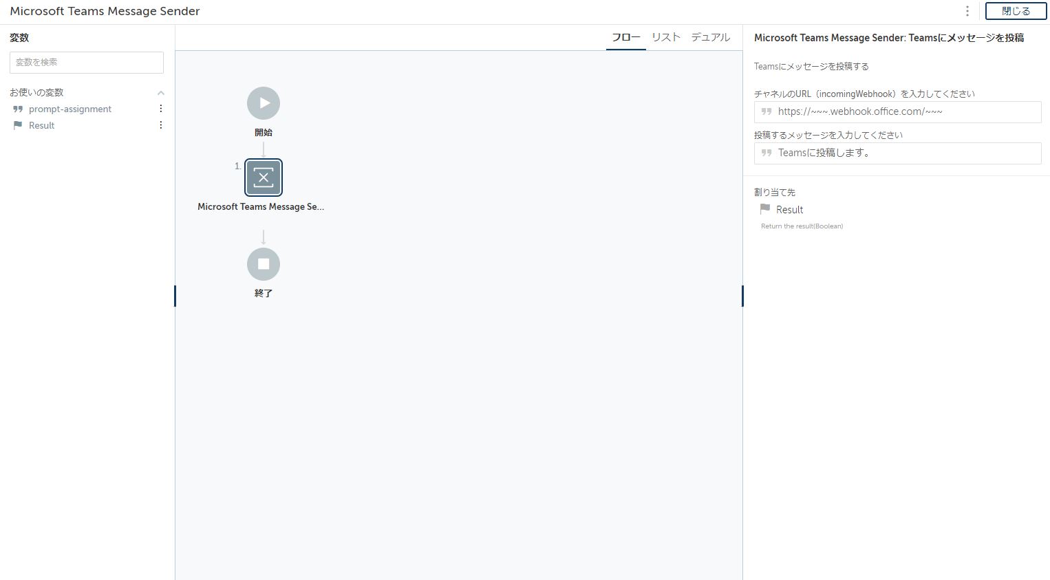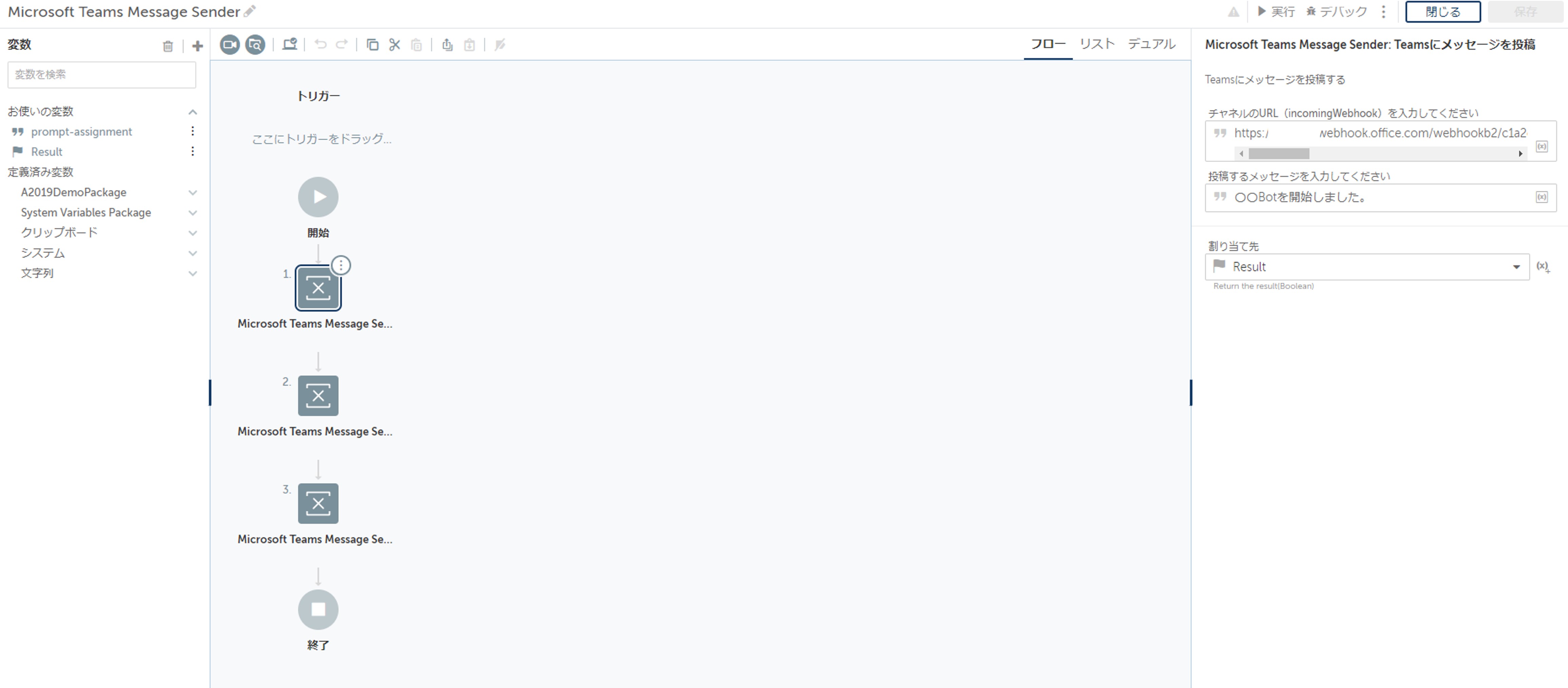 By setting the URL obtained above and the message you want to post in the action package, you can easily post to Teams from the Bot.
