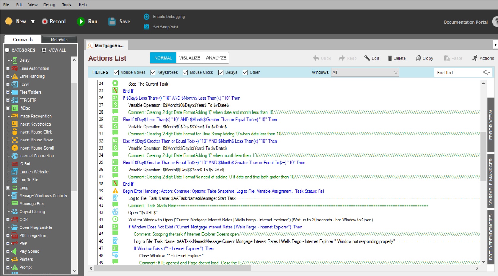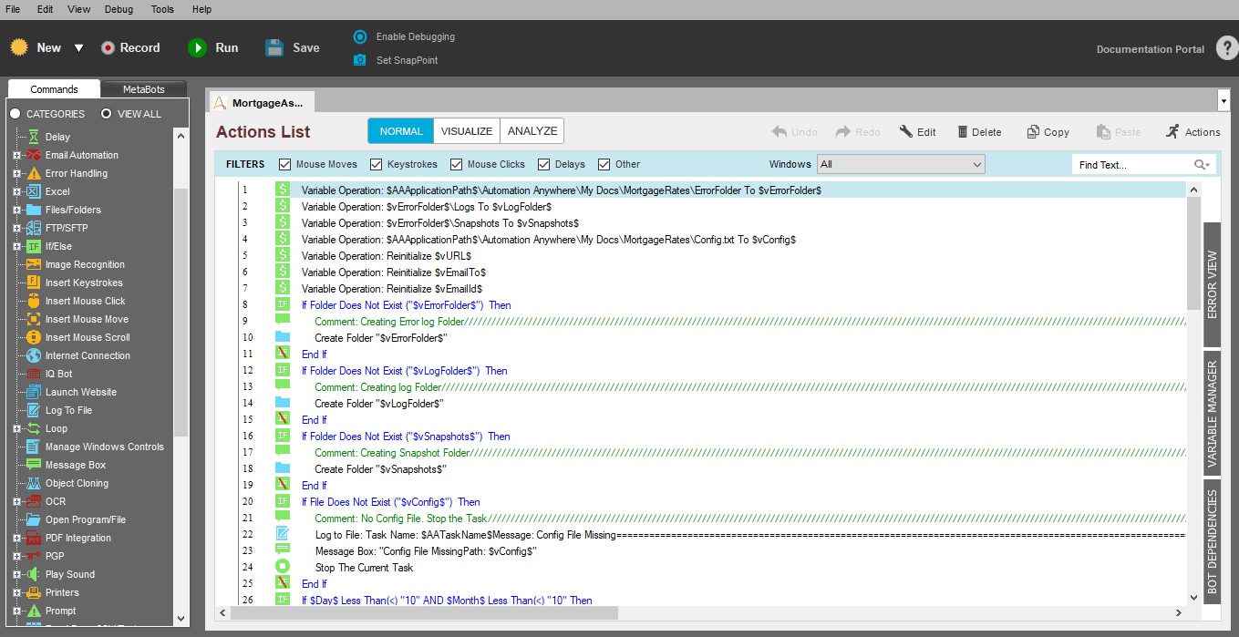 - Inputs: Place the "config.txt" configuration file in $AAApplicationPath$Automation AnywhereMy DocsMortgageRates