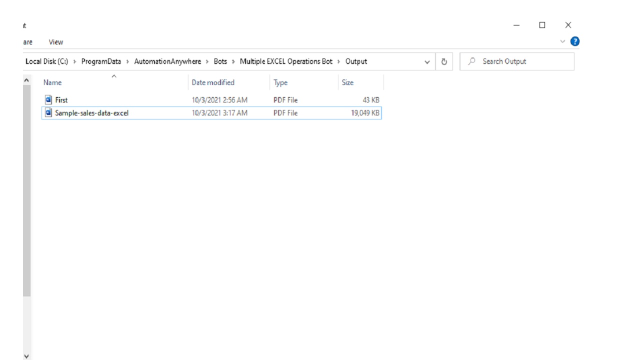 The user can choose the required excel operation from an interactive form. For Excel to PDF conversion, the output file will be created and stored in the output folder. The other actions output will be displayed in a message box.