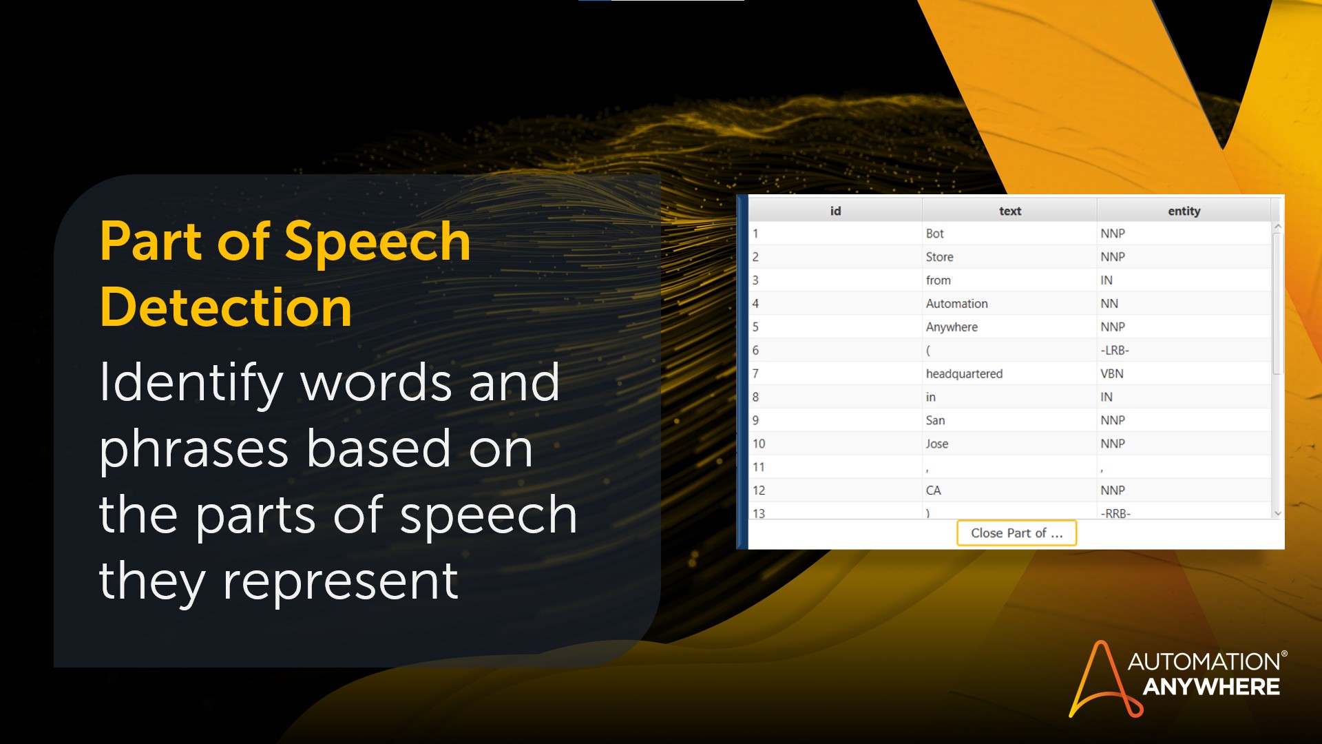 - Part of Speech Detection enables extraction of text based on the part of speech each word represents.