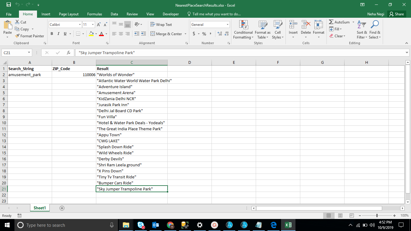 The results are quick, efficient, and accurate. Instead of searching for places manually just provide the type of place that you are looking for and the Zip code, the bot instantly searches for the area and also saves the result into an excel spreadsheet.